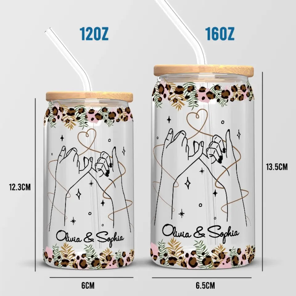 Because Of You I Laugh A Little Harder - Bestie Personalized Custom Glass Cup, Iced Coffee Cup - Gift For Best Friends, BFF, Sisters