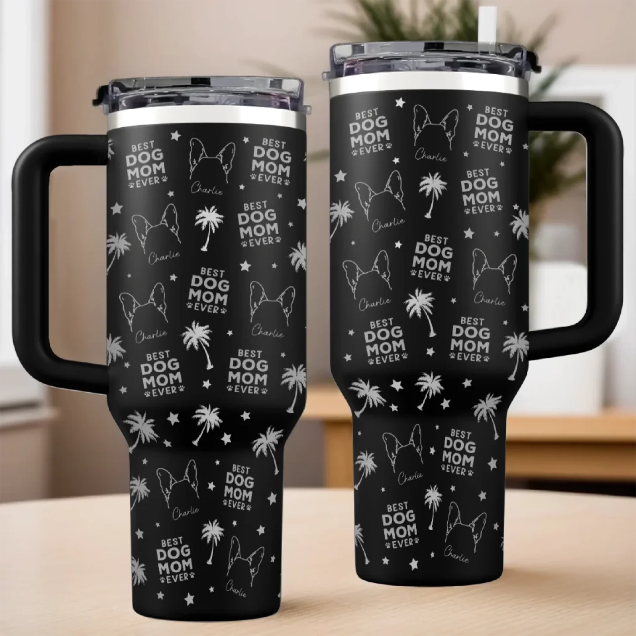 A Happy Pup Makes A Happy Mom - Dog Personalized Custom Engraved 40oz Tumbler With Handle - Gift For Pet Owners, Pet Lovers