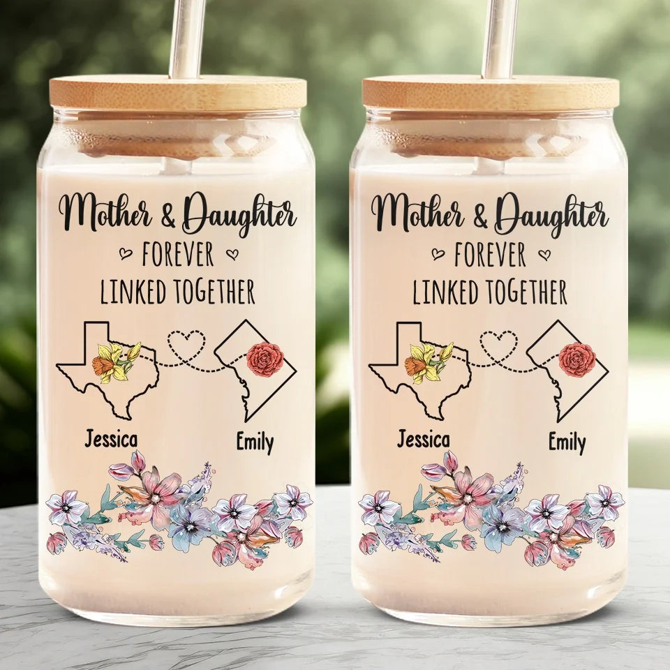 A Mother Is A Daughter's Best Friend - Family Personalized Custom Glass Cup, Iced Coffee Cup - Gift For Mom, Daughter