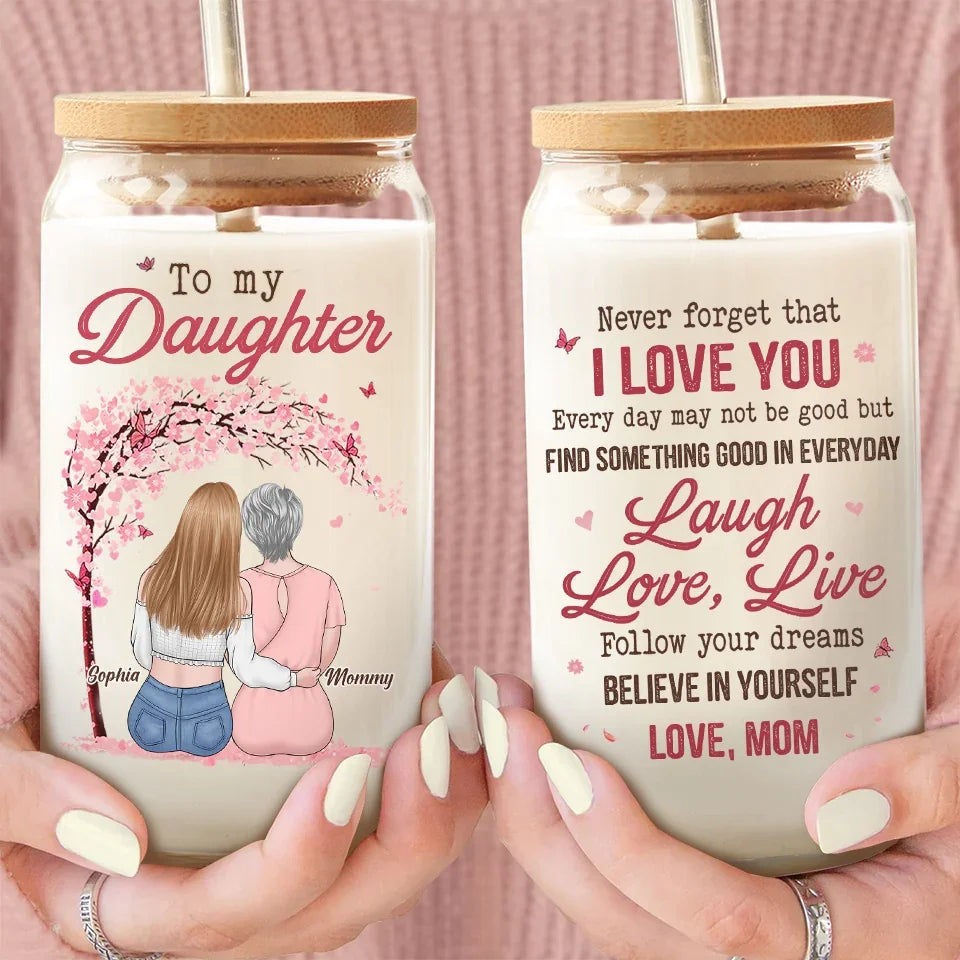 Always Keep In Your Heart That I Love You More Than Anything - Family Personalized Custom Glass Cup, Iced Coffee Cup - Gift For Mom, Daughter