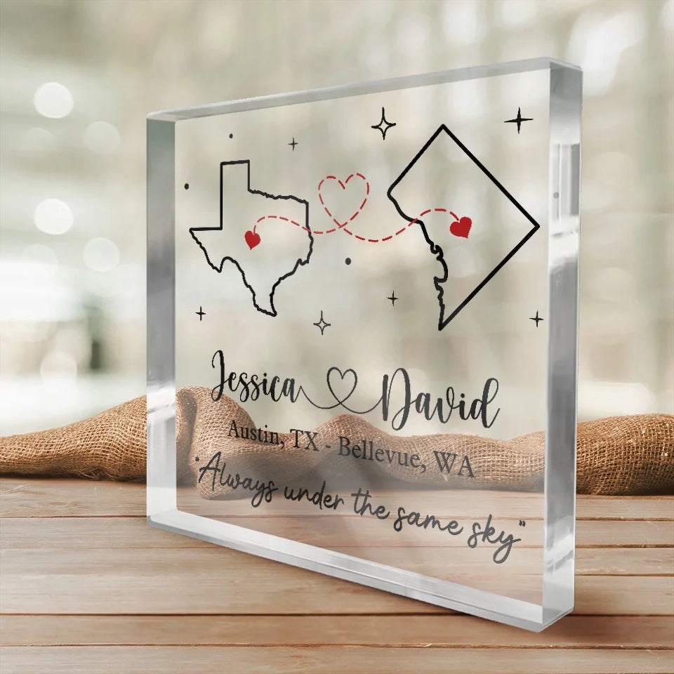 Always Under The Same Sky - Couple Personalized Custom Square Shaped Acrylic Plaque - Gift For Husband Wife, Anniversary