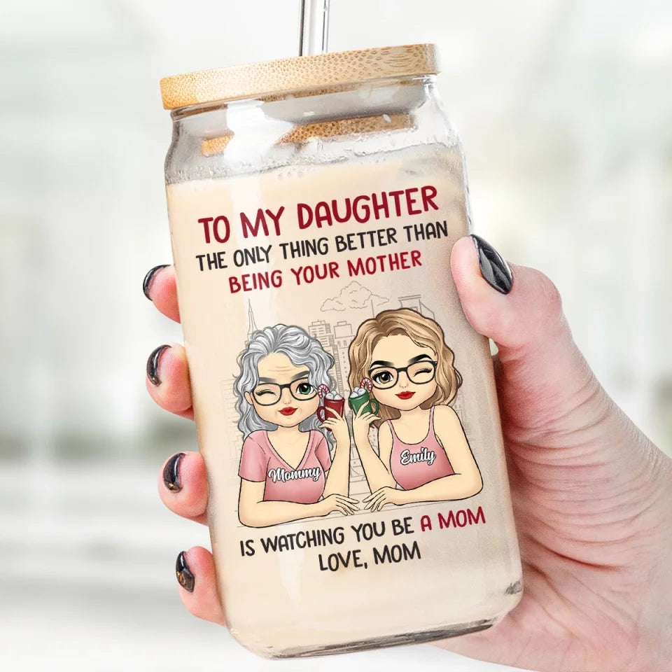 As Mothers And Daughters, We Are Connected With One Another - Family Personalized Custom Glass Cup, Iced Coffee Cup - Gift For Mom, Daughter
