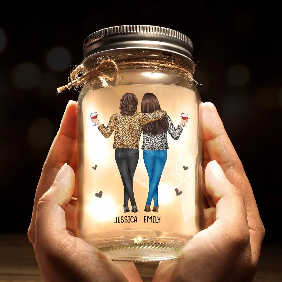 Because Of You, I Laugh A Little Harder - Bestie Personalized Custom Mason Jar Light - Gift For Best Friends, BFF, Sisters