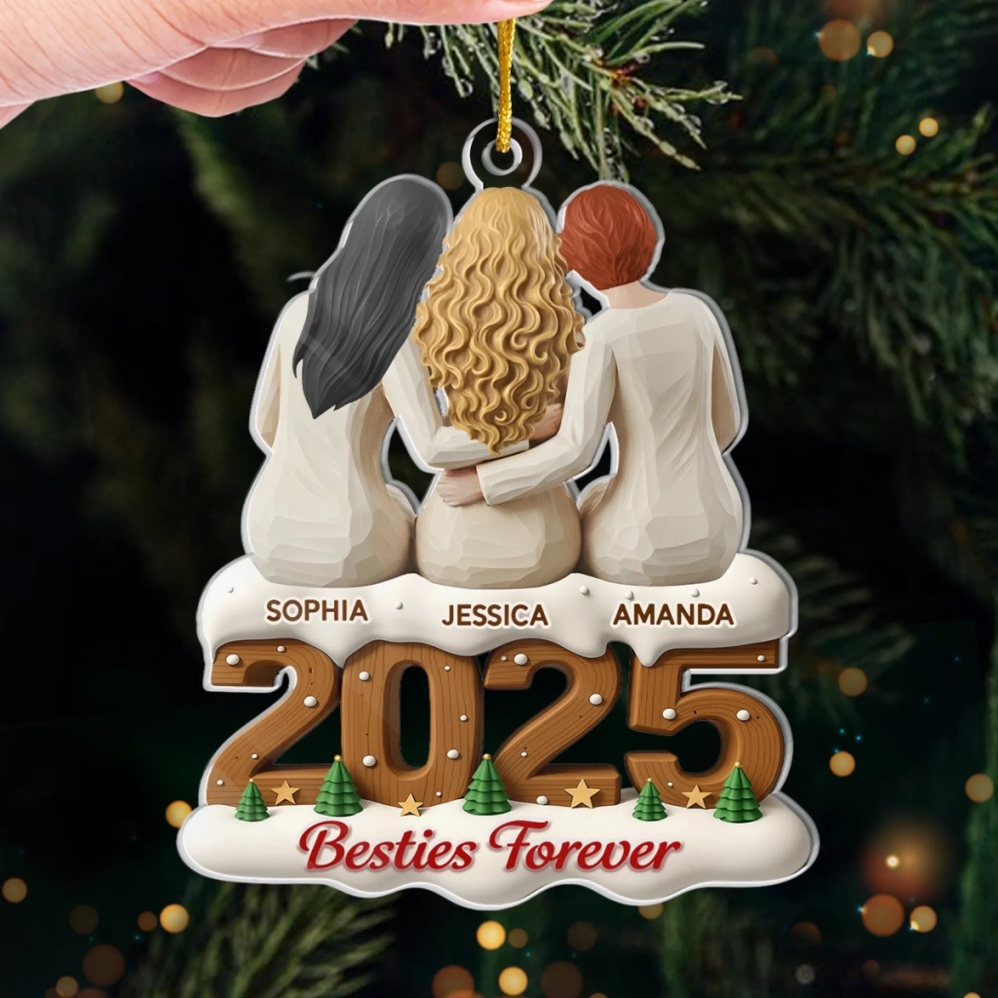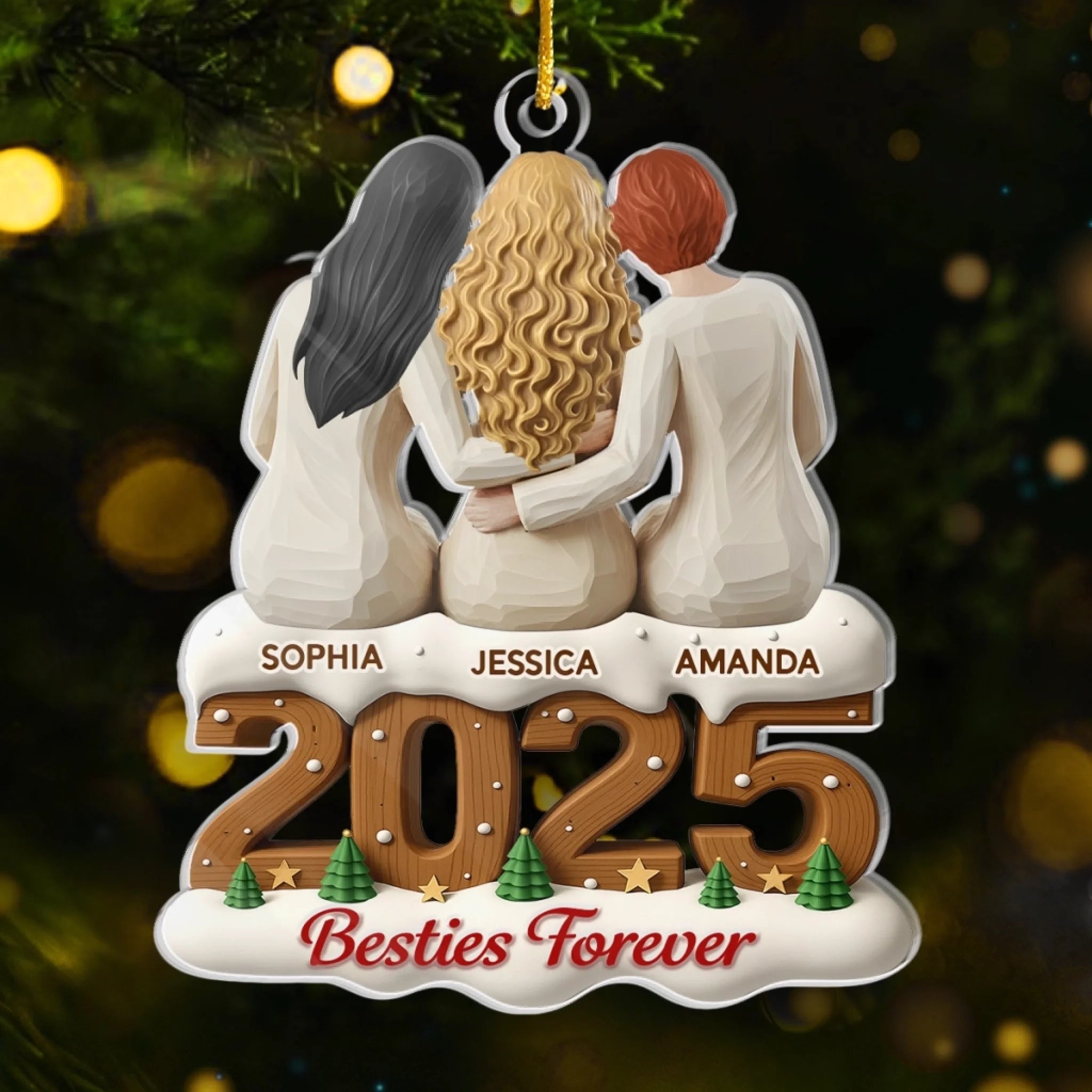 Custom Acrylic Ornament - Personalized Best Friend Christmas Birthday Gifts For Women, Besties, Sisters, BFF - Miles Apart Hearts Still Close