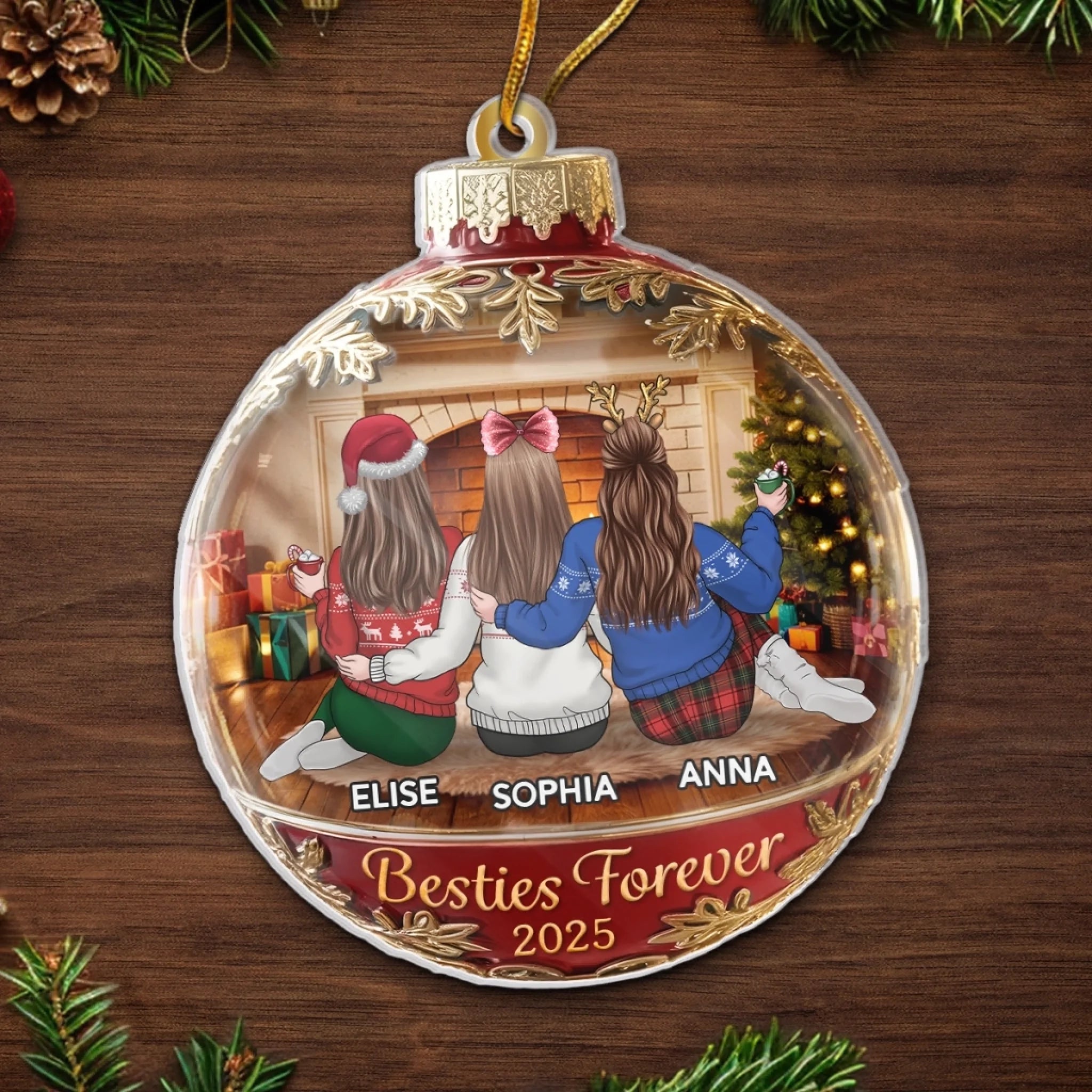 Custom Acrylic Ornament - Personalized Best Friend Christmas Birthday Gifts For Women, Besties, Sisters, BFF - More Laughs Less Drama