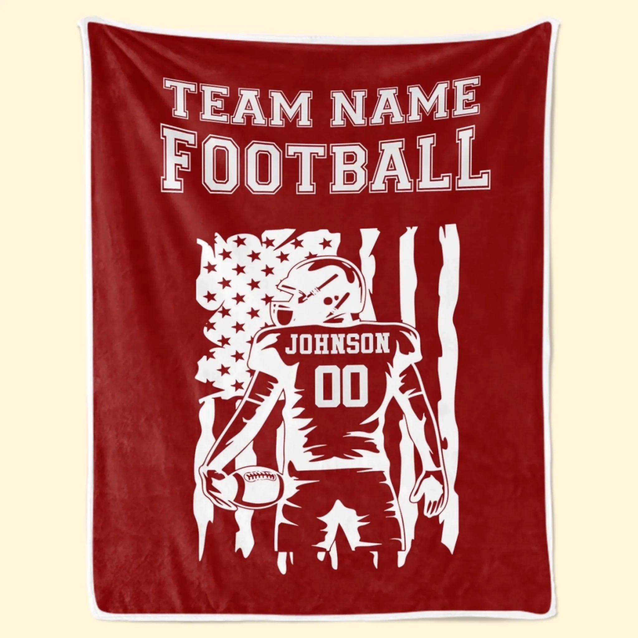 Custom American Football Blanket - Personalized Gift For Birthday, Football Football Lovers, NFL Fans, Sport Lovers, Senior Graduation Gift - Team Name with Flag