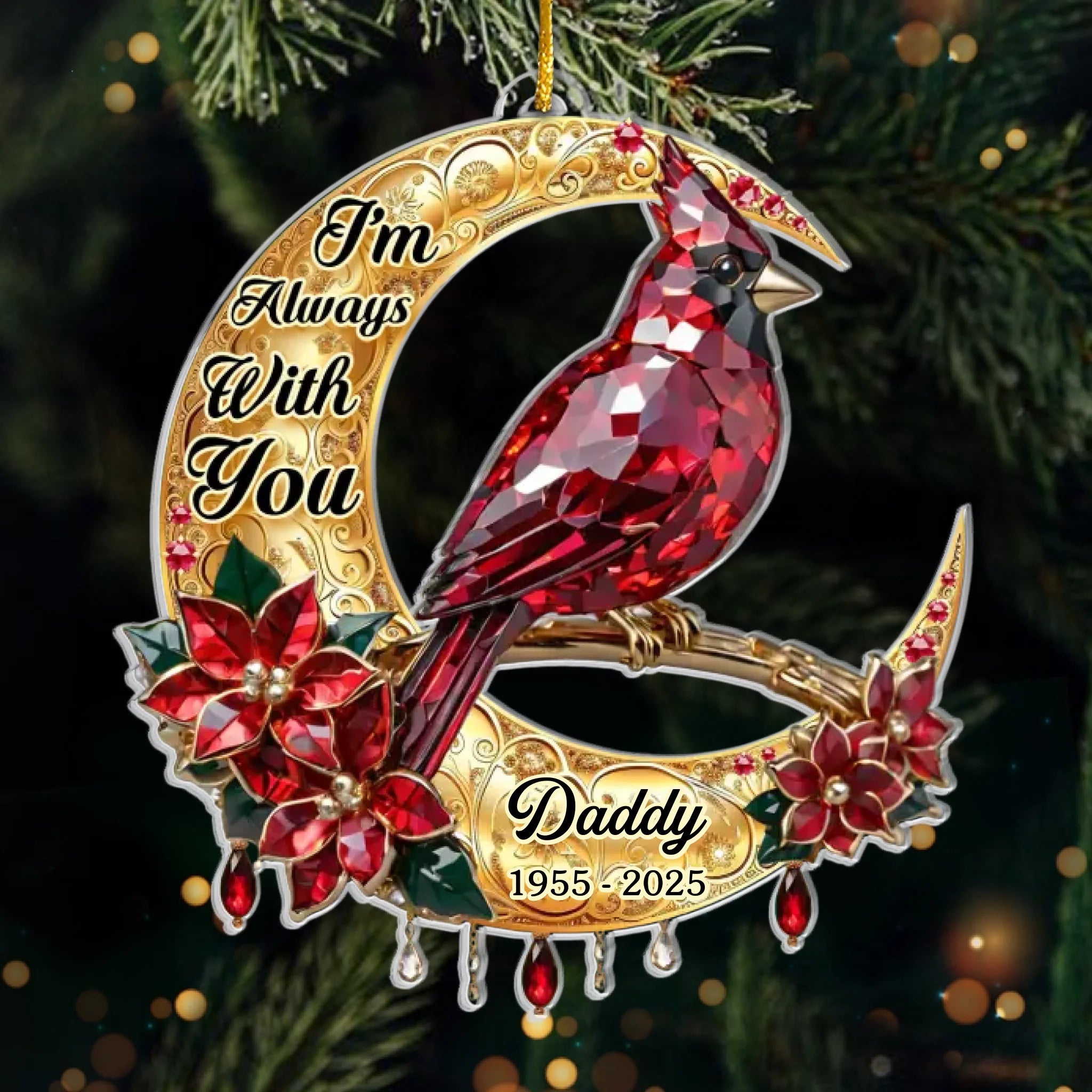 Custom Cardinal Acrylic Ornament - Personalized Christmas Memorial Sympathy Gifts For Loss Of Mom, Dad - Always In My Heart Forever Near
