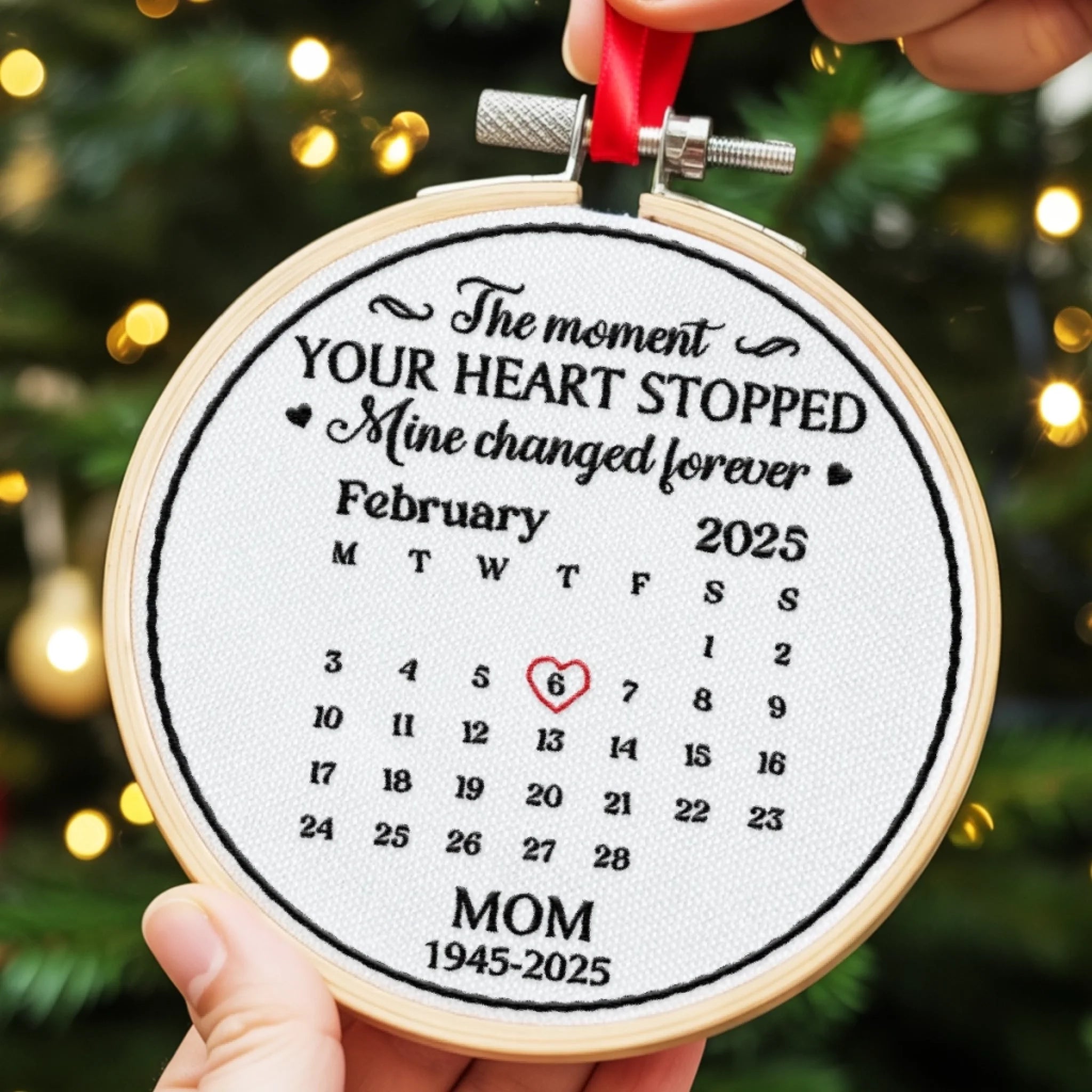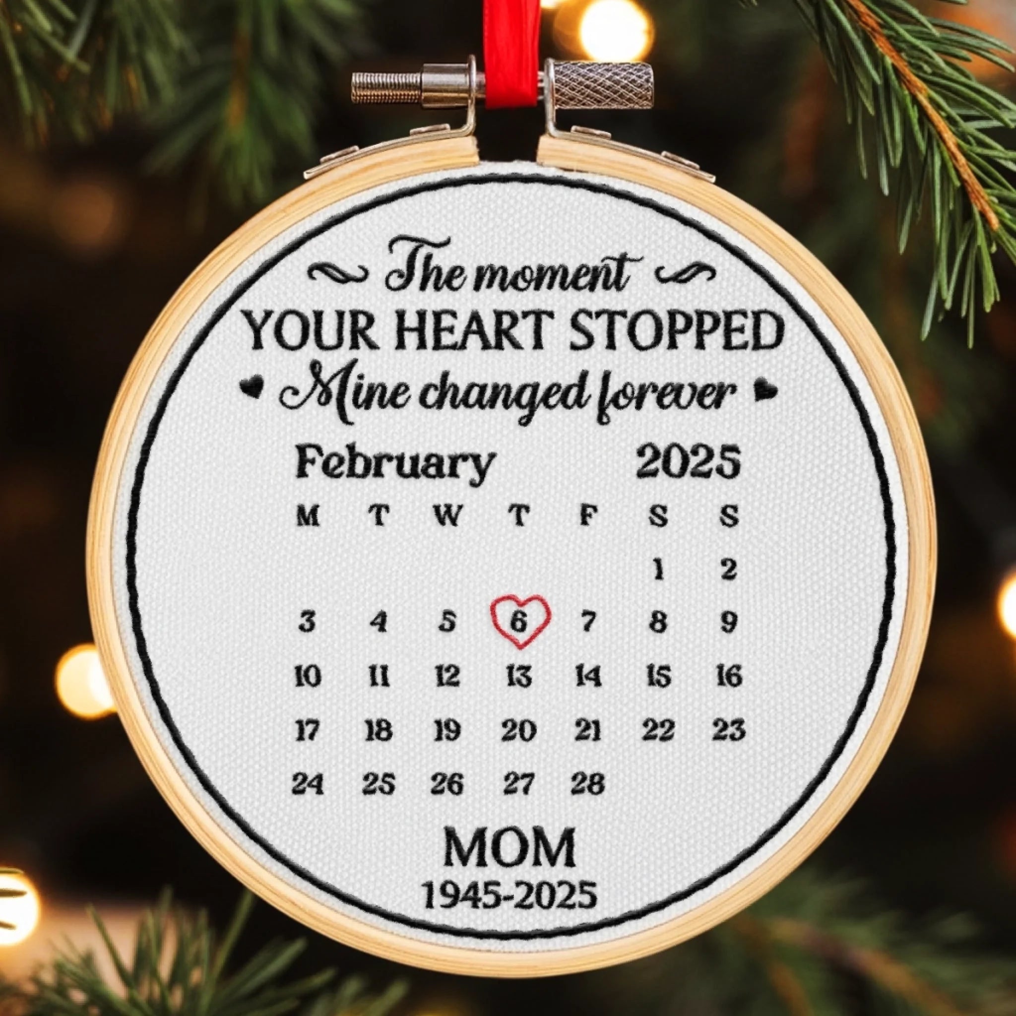 Custom Embroidered Ornament - Personalized Christmas Memorial Sympathy Gifts For Loss Of Mom, Dad - Your Memory Lights My Heart