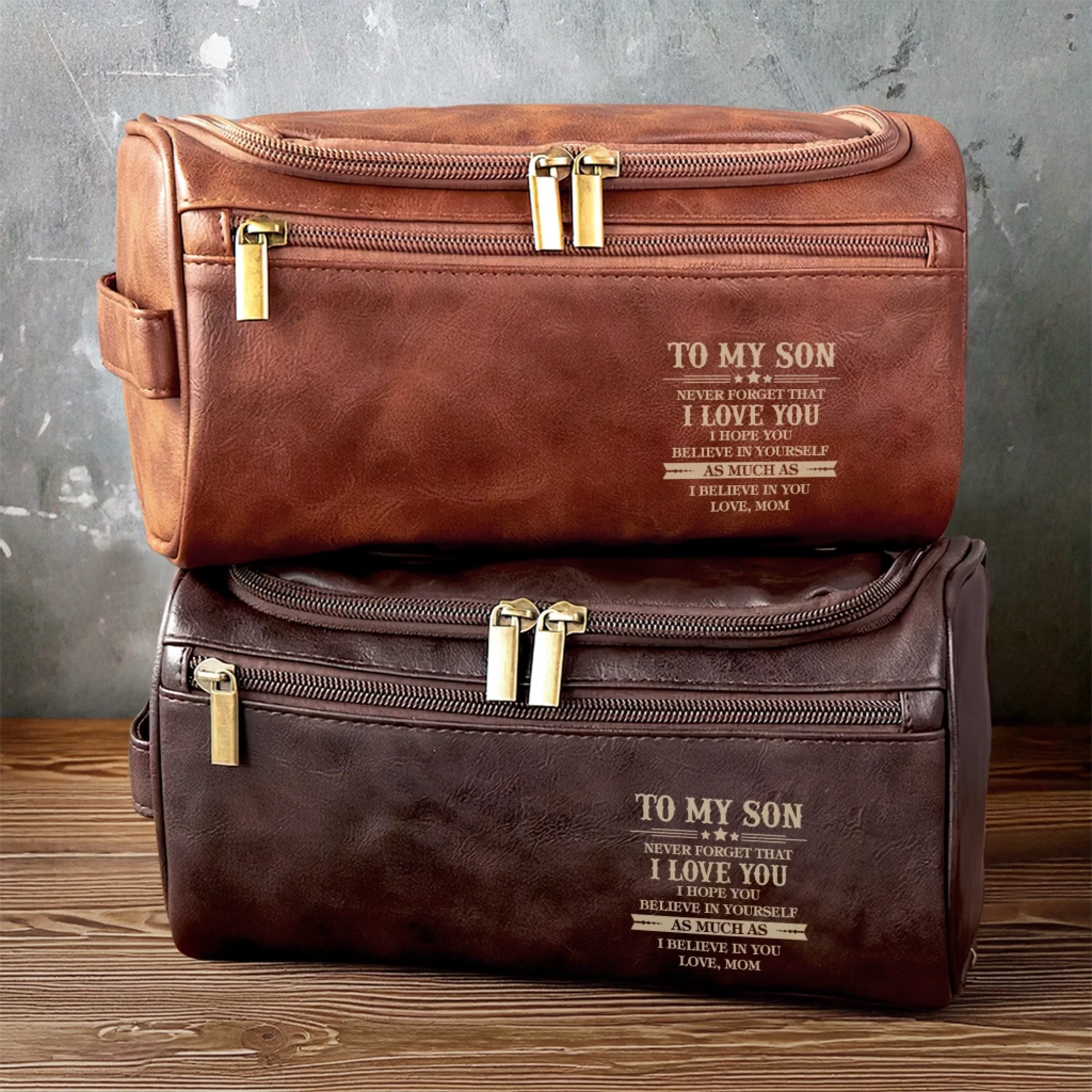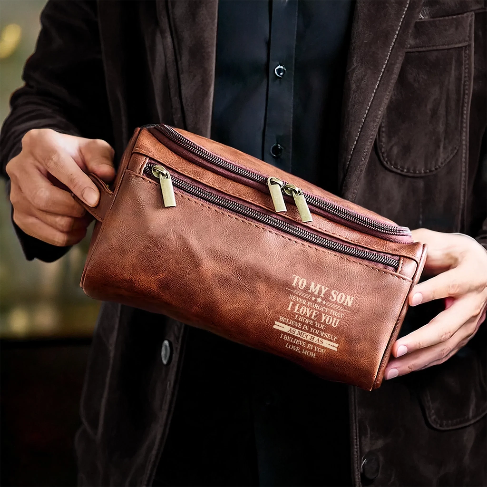 Custom Engraved Leather Toiletry Bag - Personalized Birthday Gifts For Son - Carry What Matters