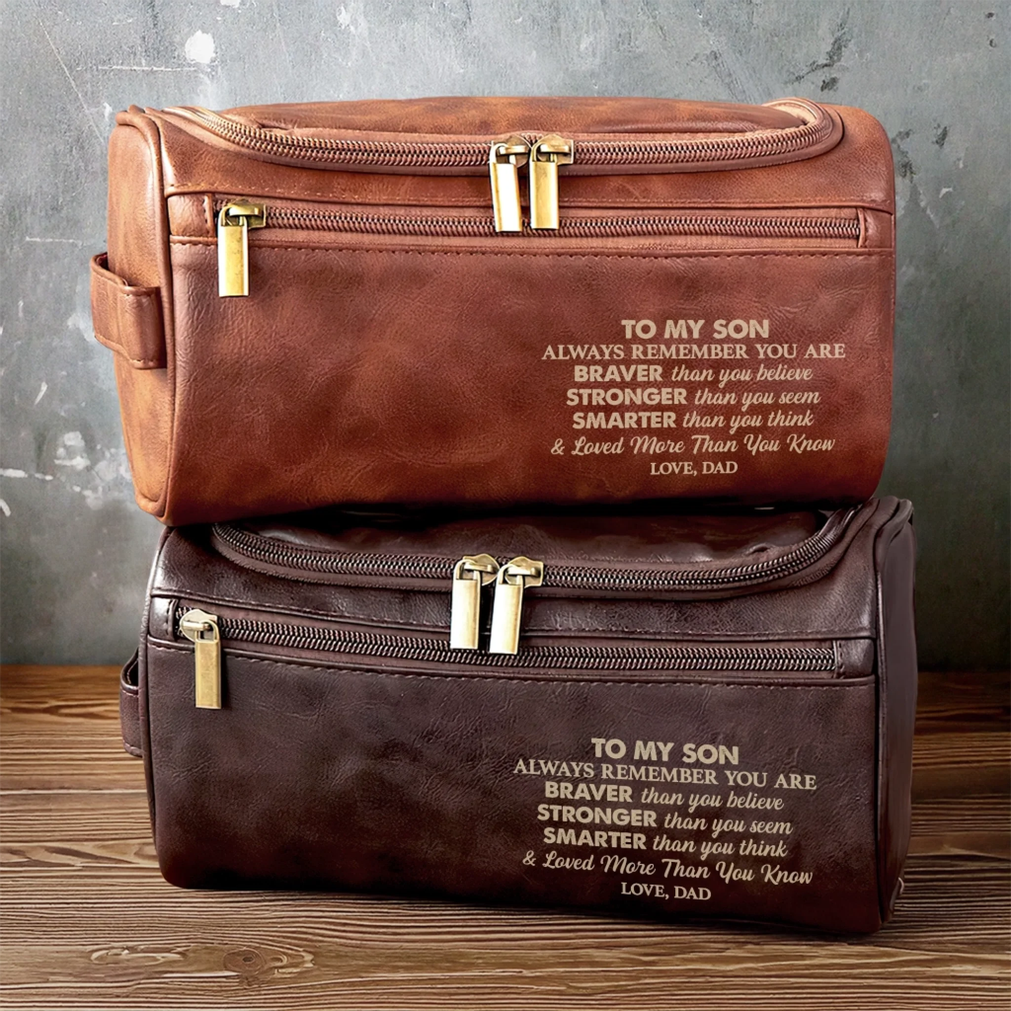 Custom Engraved Leather Toiletry Bag - Personalized Birthday Gifts For Son - Every Mile Matters