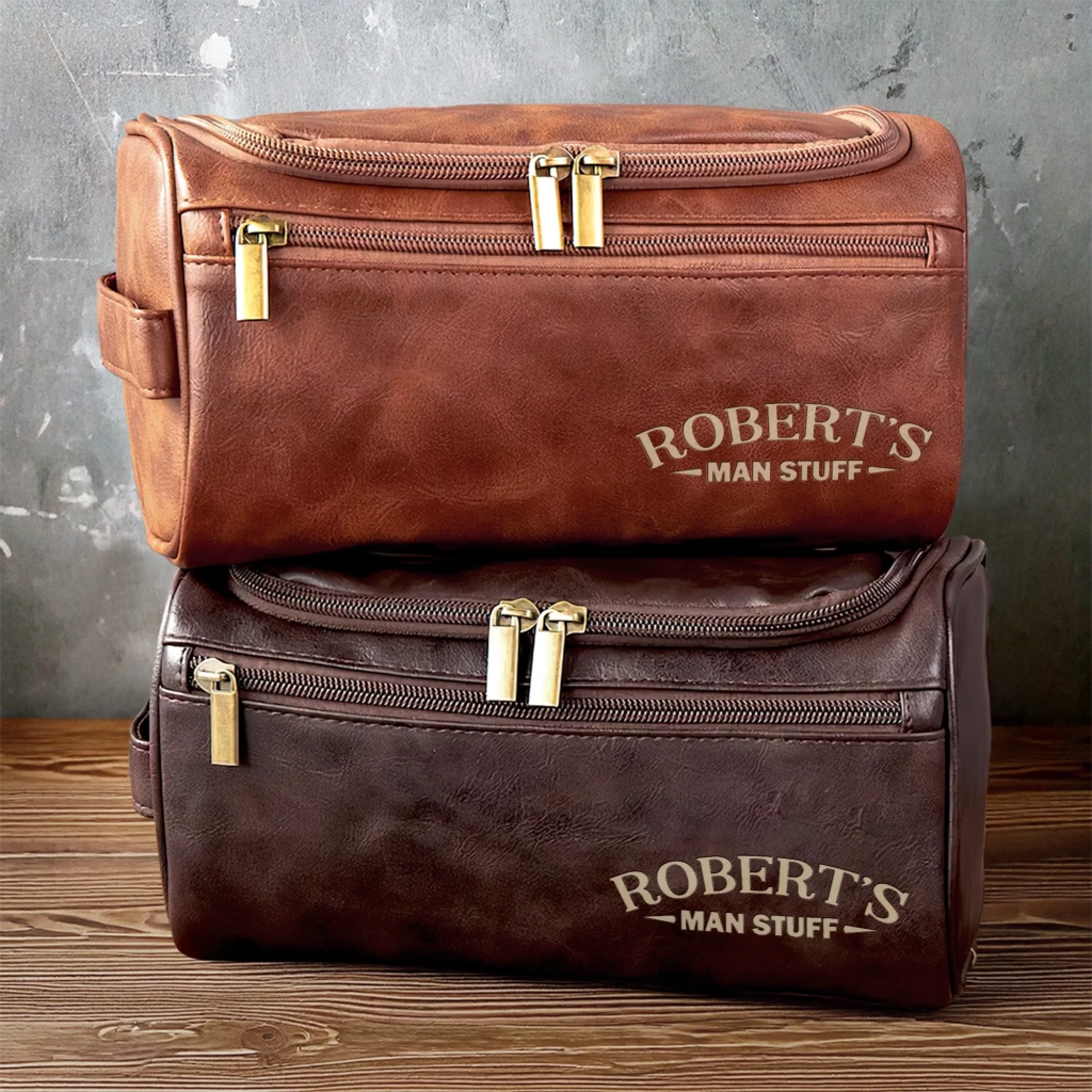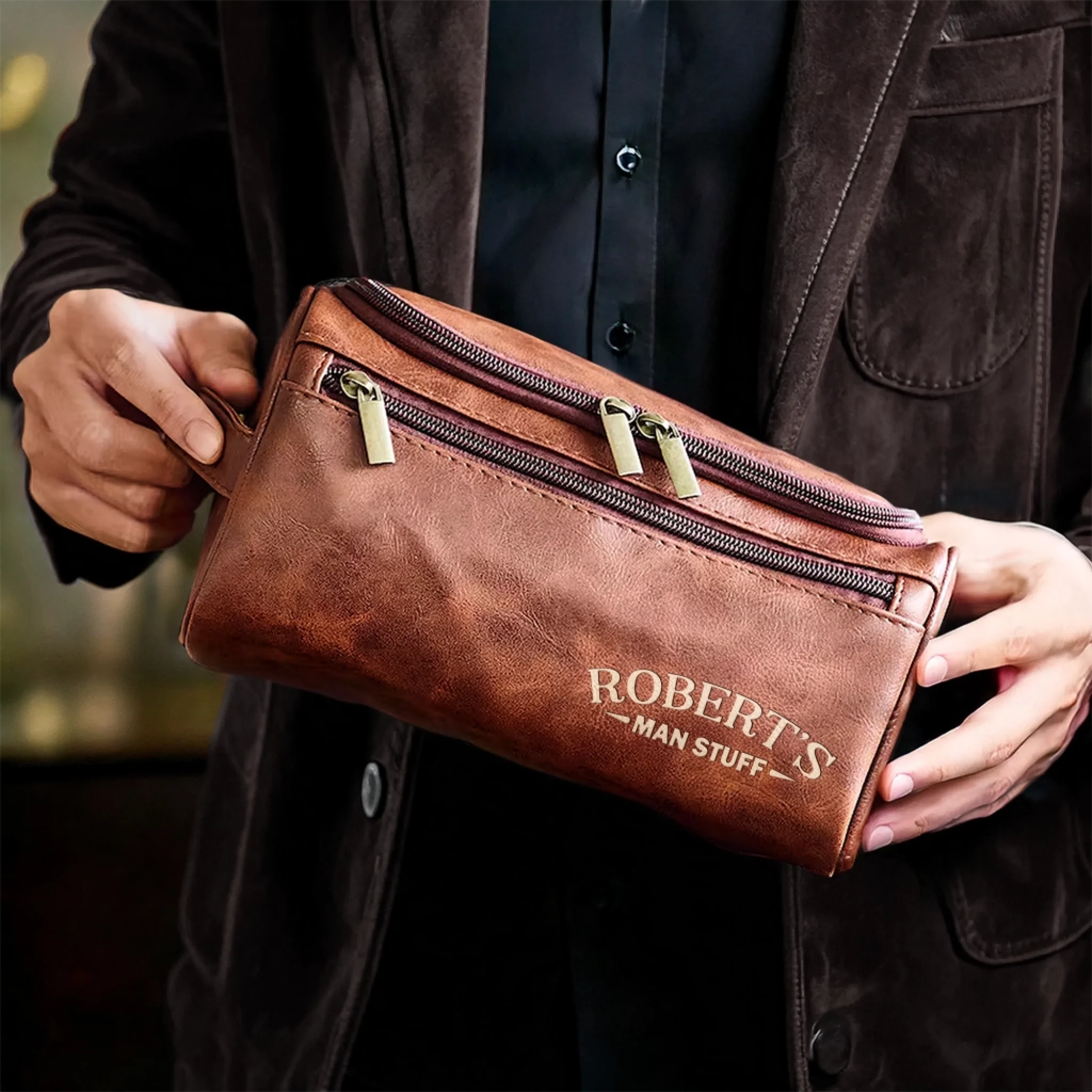 Custom Engraved Leather Toiletry Bag - Personalized Christmas Birthday Gifts For Dad, Brother, Son, Husband, Groomsman, Best Friends - The Ultimate Man Kit