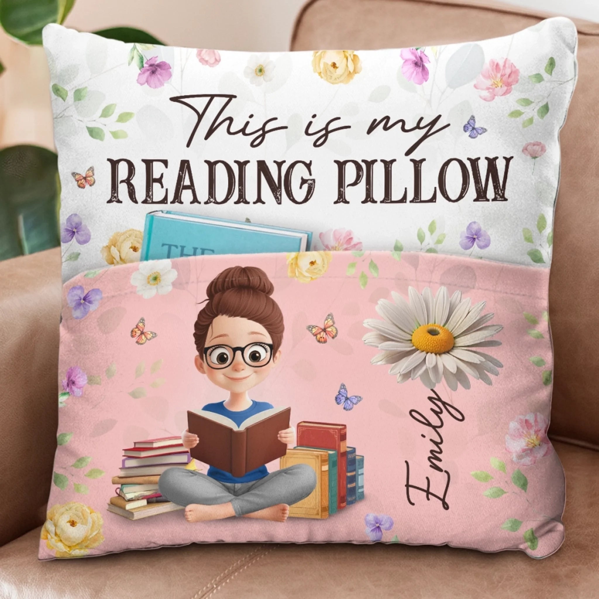 Custom Flower Pocket Pillow - Personalized Bookish Gifts For Book Lovers, Bookworms, Readers - Reading Is My Therapy