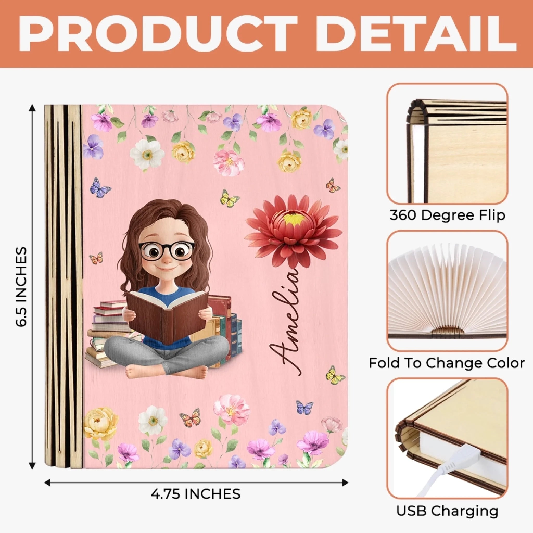 Custom Foldable LED Magic Book Lamp - Personalized Christmas Bookish Gifts For Book Lovers, Bookworms, Readers - Books Light My World