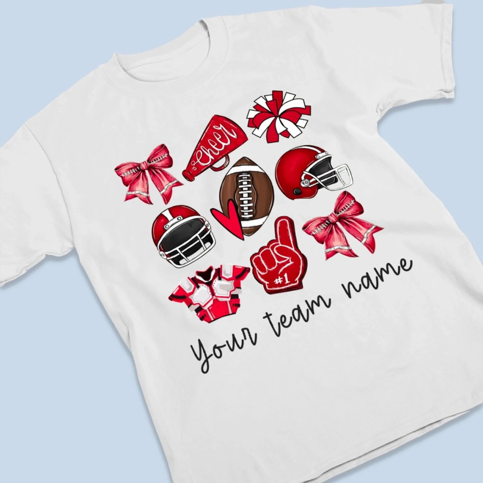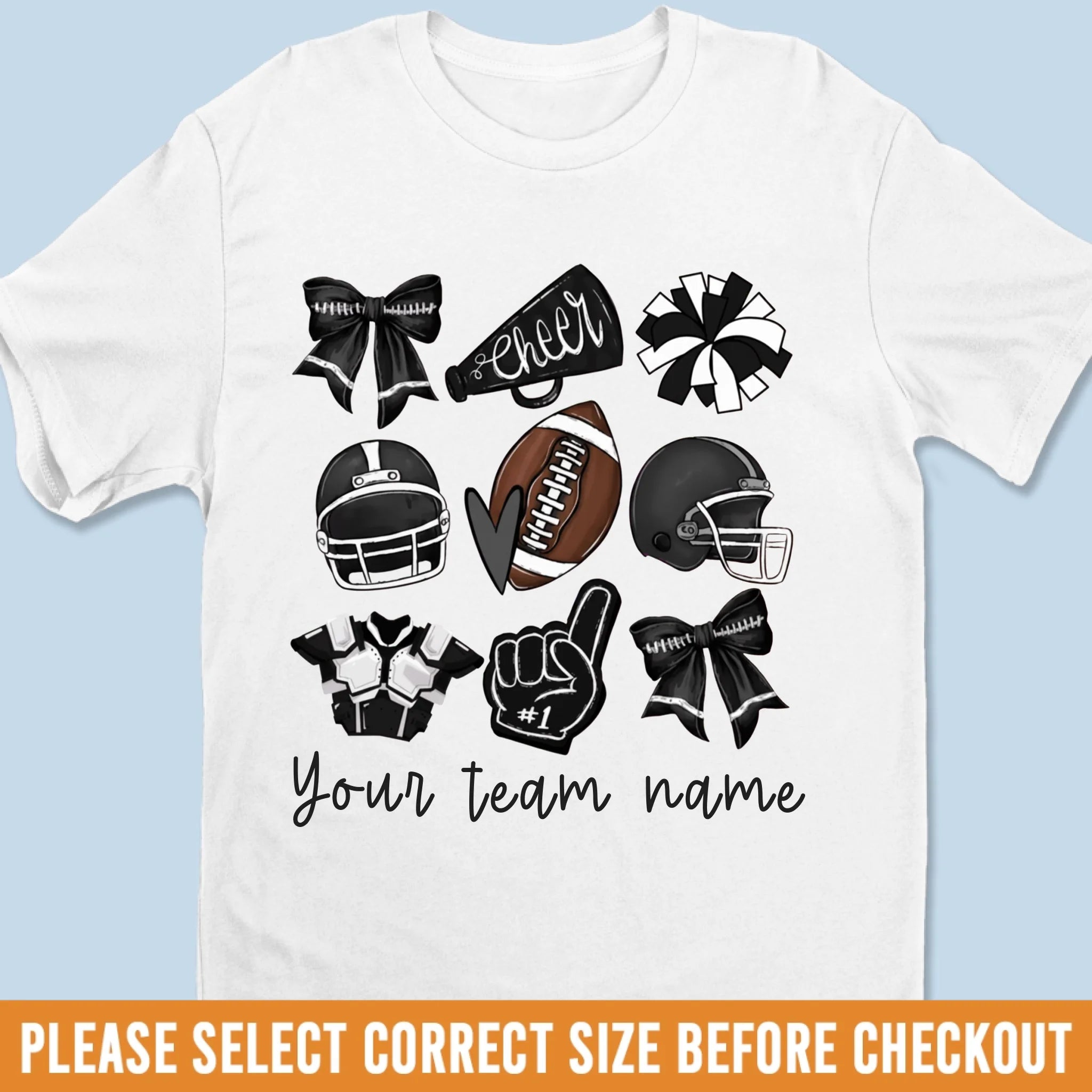 Custom Football Cheer Mom T-shirt, Hoodie - Personalized Birthday Football Gifts For American Football Players, Cheerleader, Football Lovers, Football Mom, Football Grandparent, - American Football Coquette Bow Team