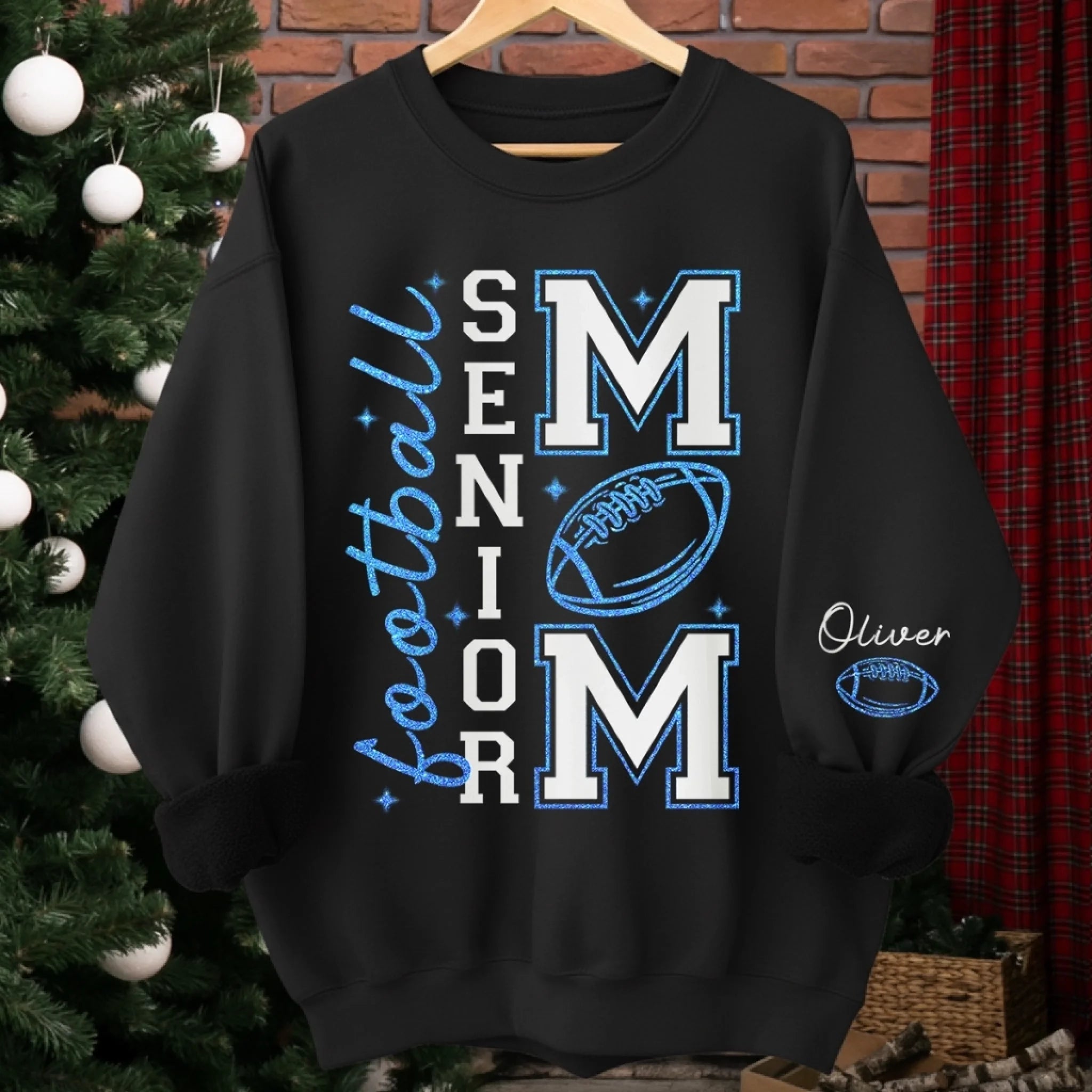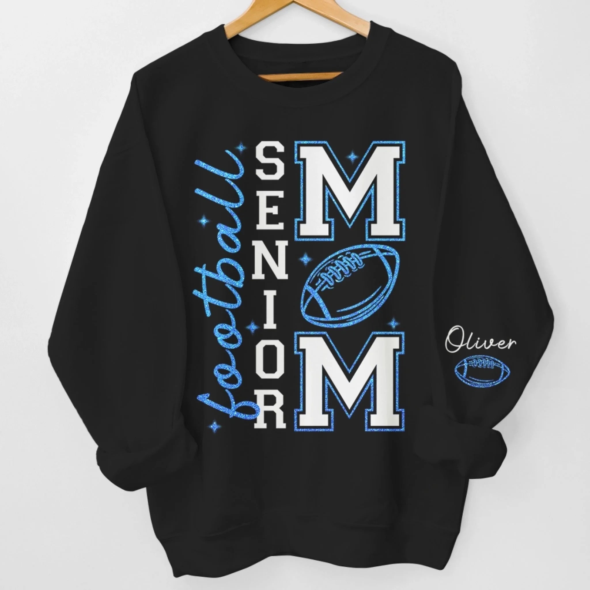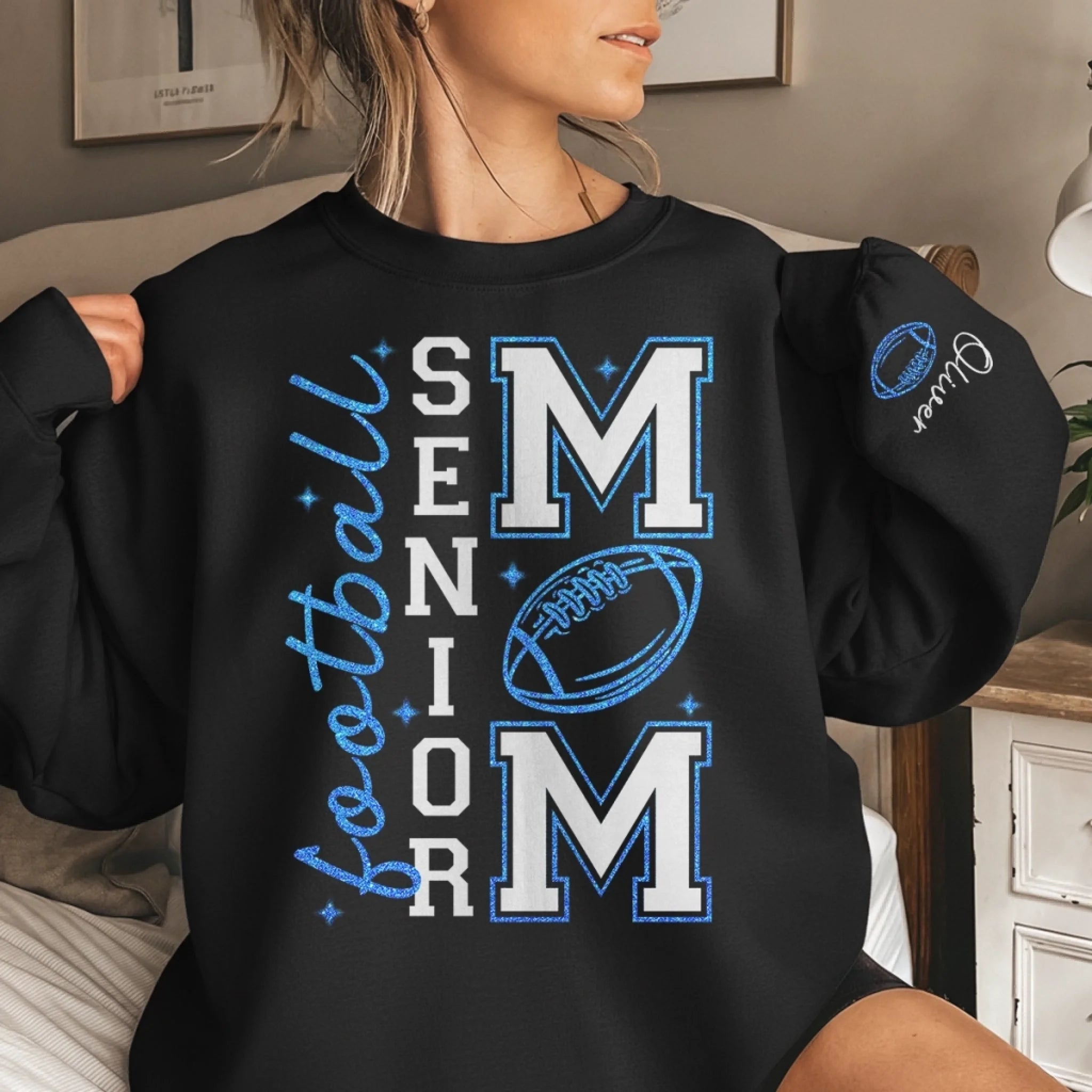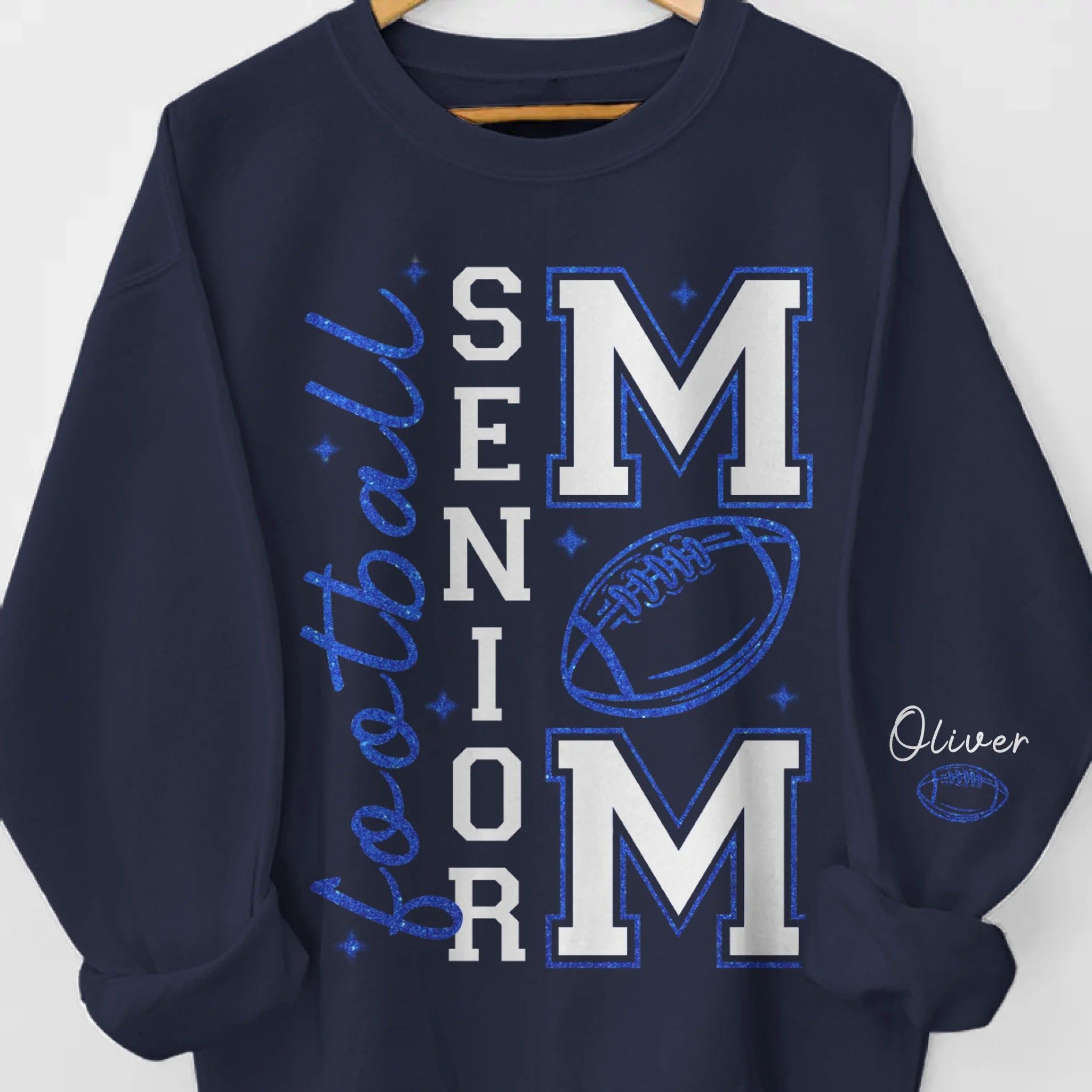 Custom Football Mom Unisex Sweatshirt, Hoodie With Design On Sleeve Personalized Birthday Football Gifts For Mom, Football Lovers, NFL Fans, Sport Lovers - Triumphant Senior Football Mama with Kid Name