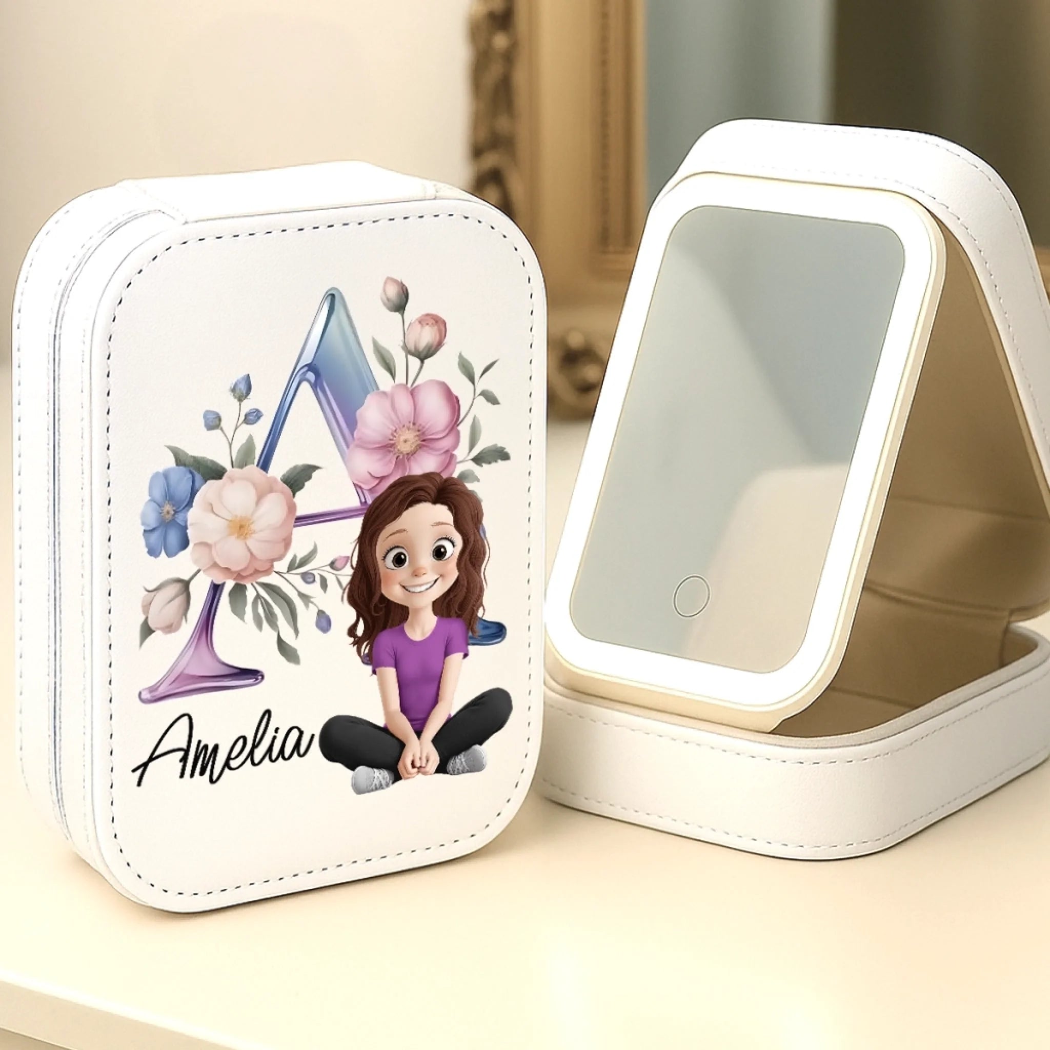 Custom Jewelry Box LED Makeup - Personalized Birthday Gifts For Besties, Sisters, BFF, Family, Yourself - Growing Through Every Little Moment