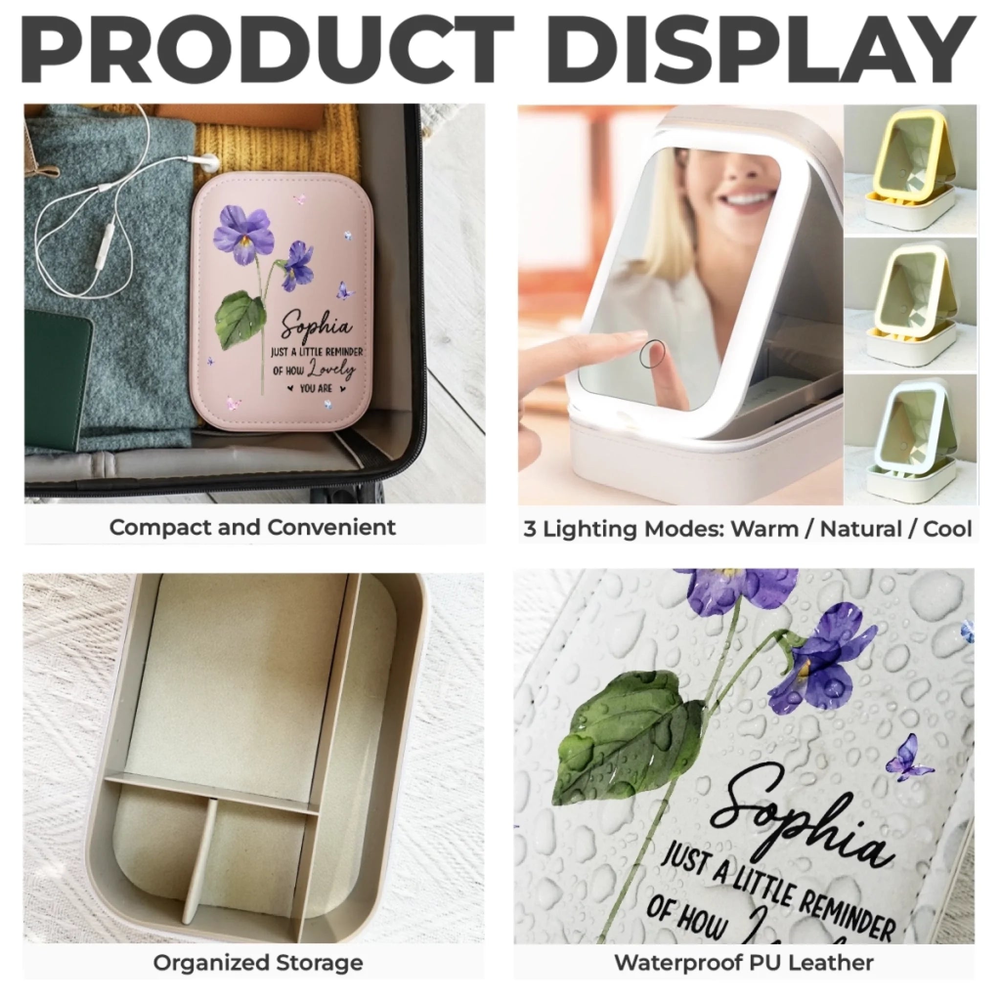 Custom Jewelry Box LED Makeup - Personalized Birthday Gifts For Besties, Sisters, BFF, Family, Yourself - You Are Enough Every Day