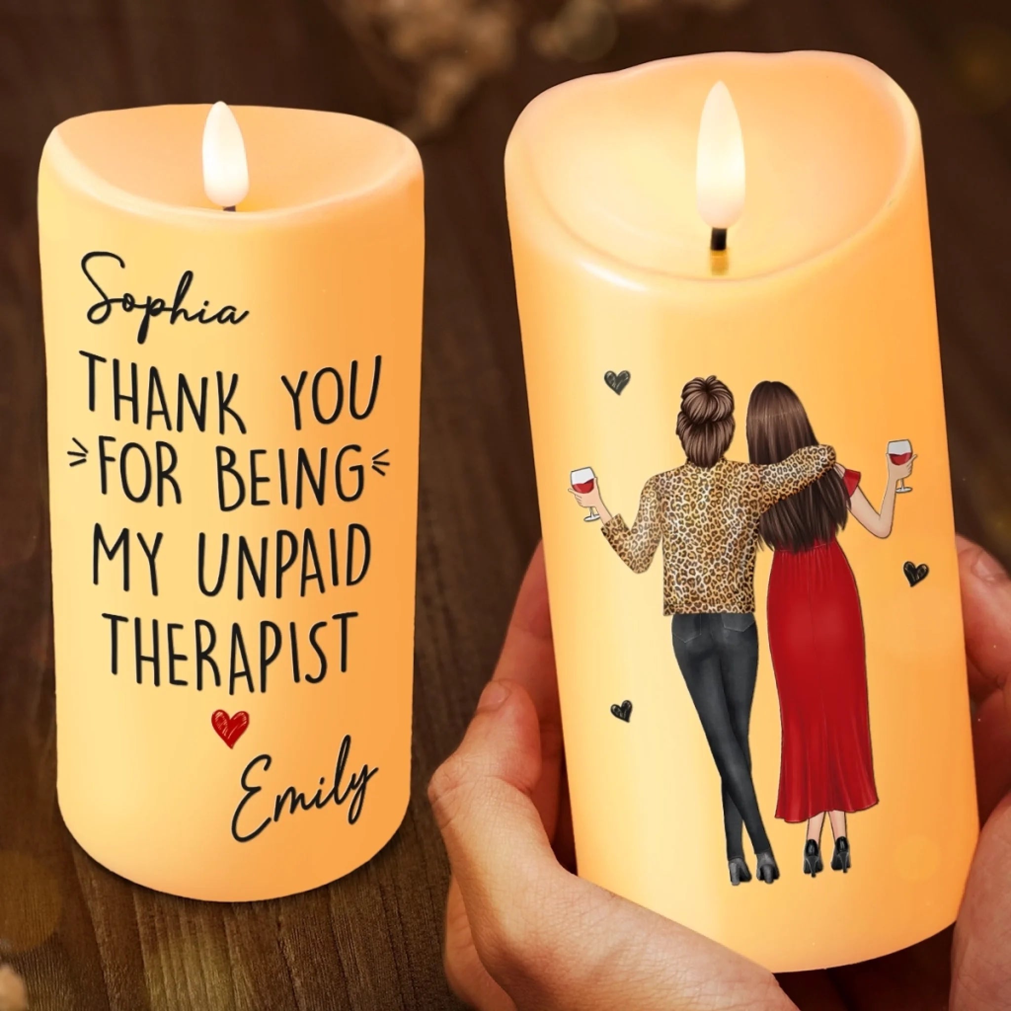 Custom LED Candle - Personalized Best Friend Birthday Gifts For Women, Besties, Sisters, BFF - Glowing Through It Together
