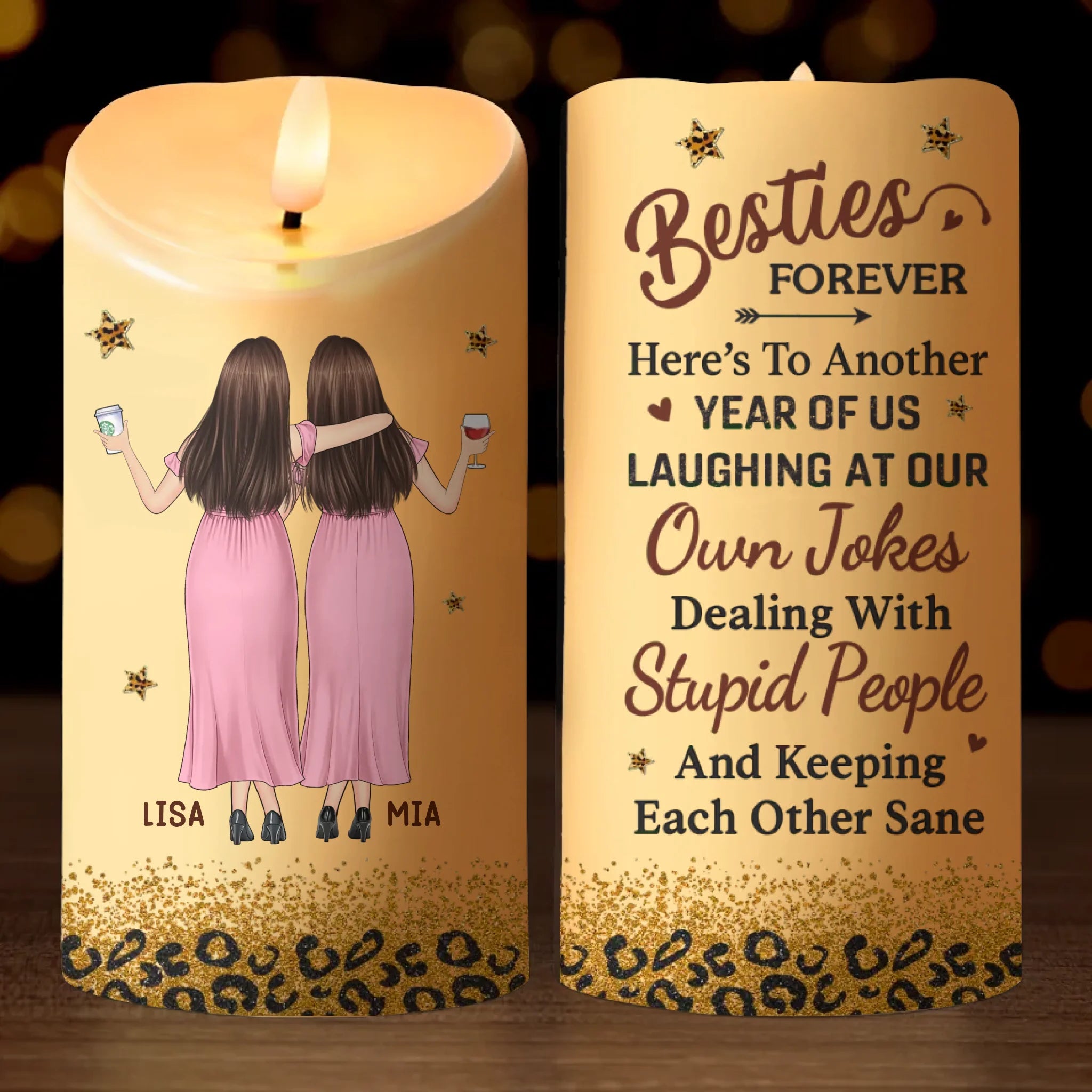 Custom LED Candle - Personalized Best Friend Birthday Gifts For Women, Besties, Sisters, BFF - Our Laughs Are Forever Echoes