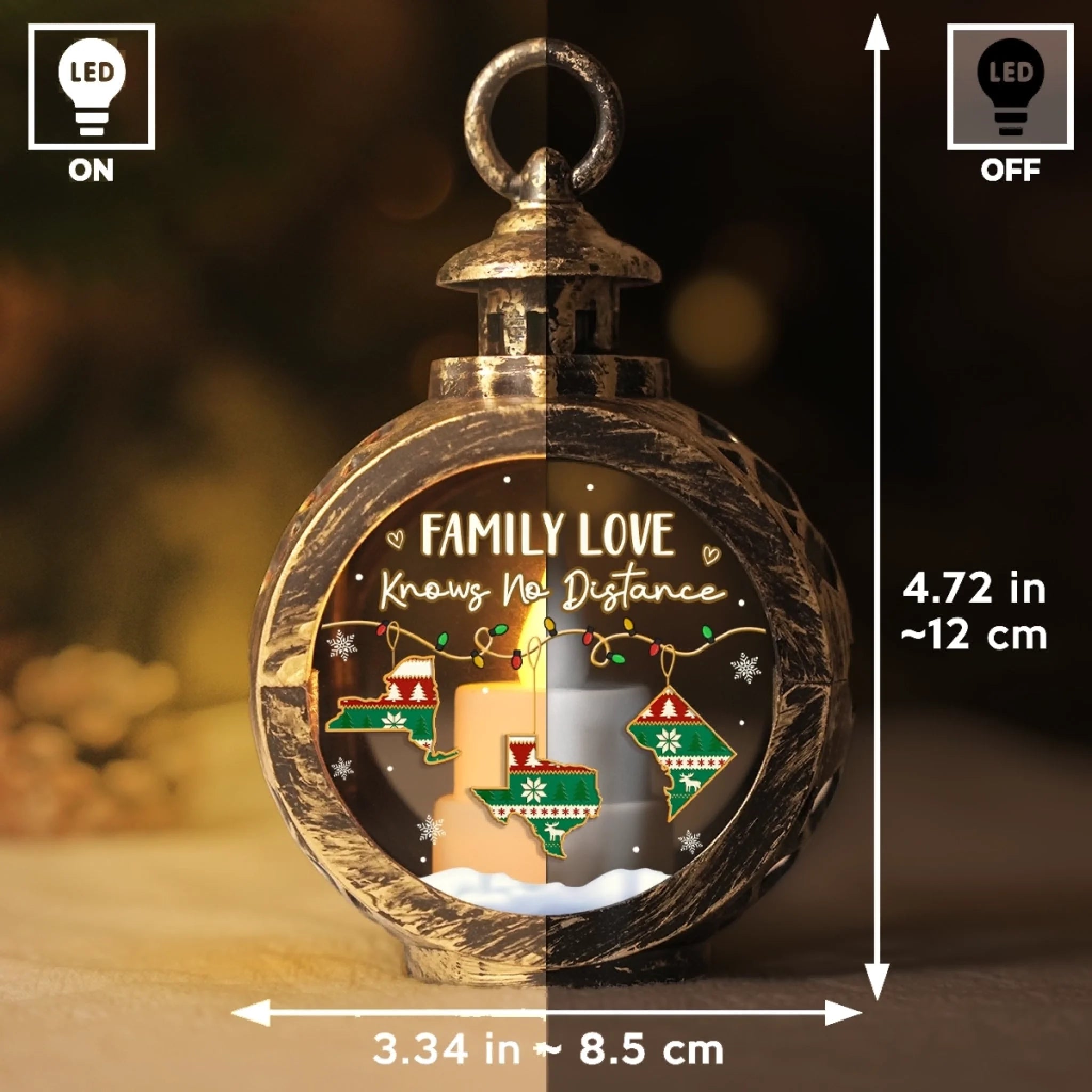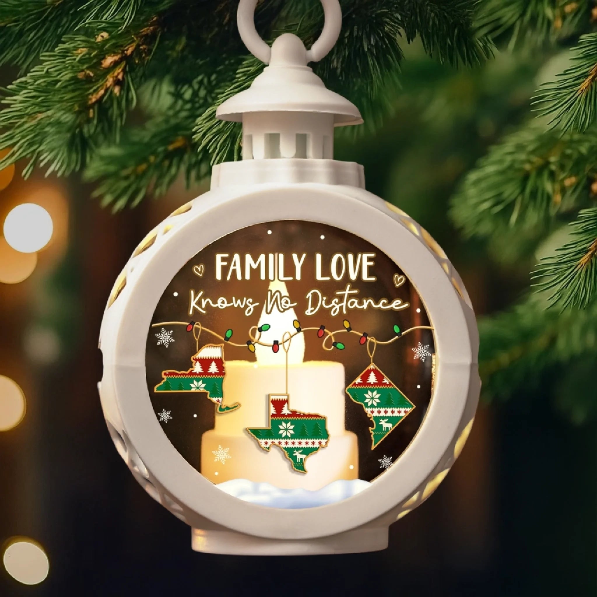 Custom Long Distance Candlelight Lantern Ornament - Personalized Christmas Birthday Gifts For Mom, Dad, Brother, Sister, Kids - Miles Apart Hearts Still Together