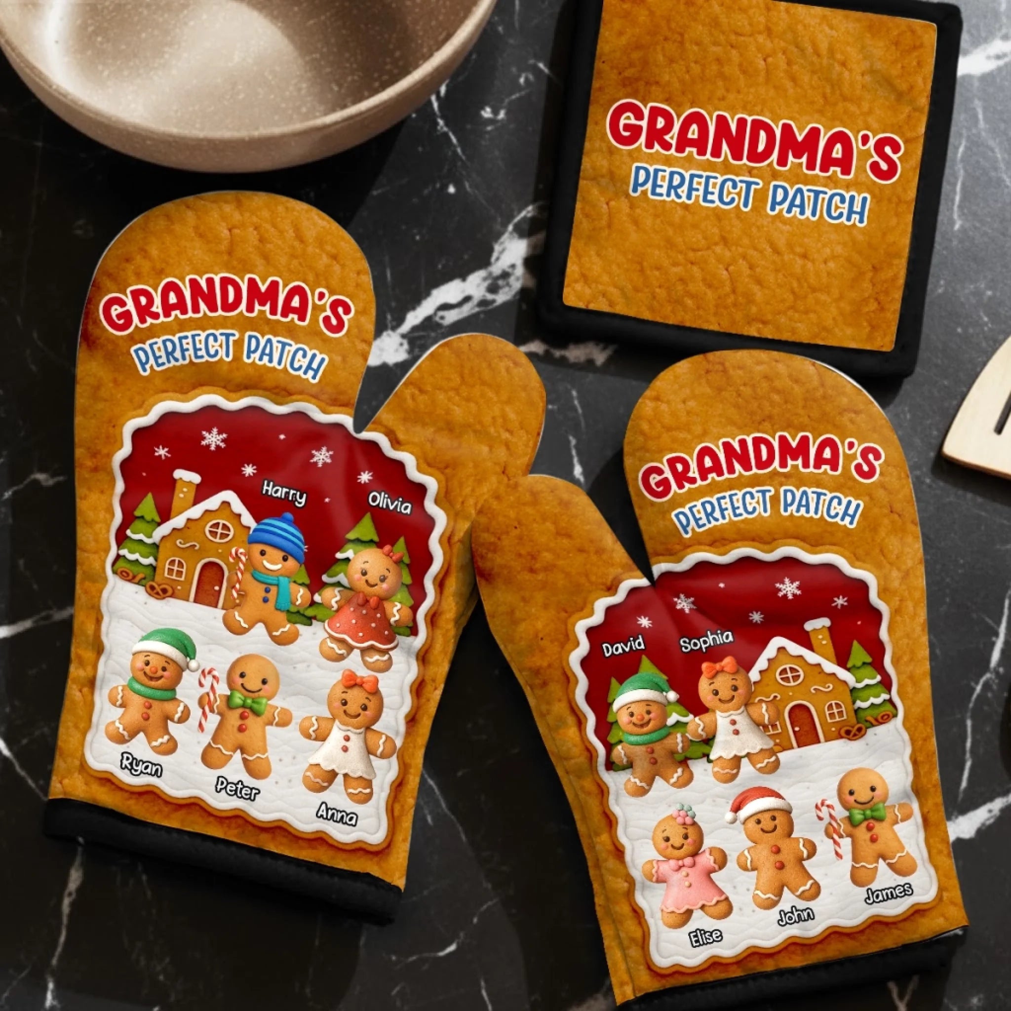 Custom Oven Mitt And Pot Holder Set - Personalized Christmas Birthday Gifts For Mom, Grandma - Cooking Love Passed Through Generations