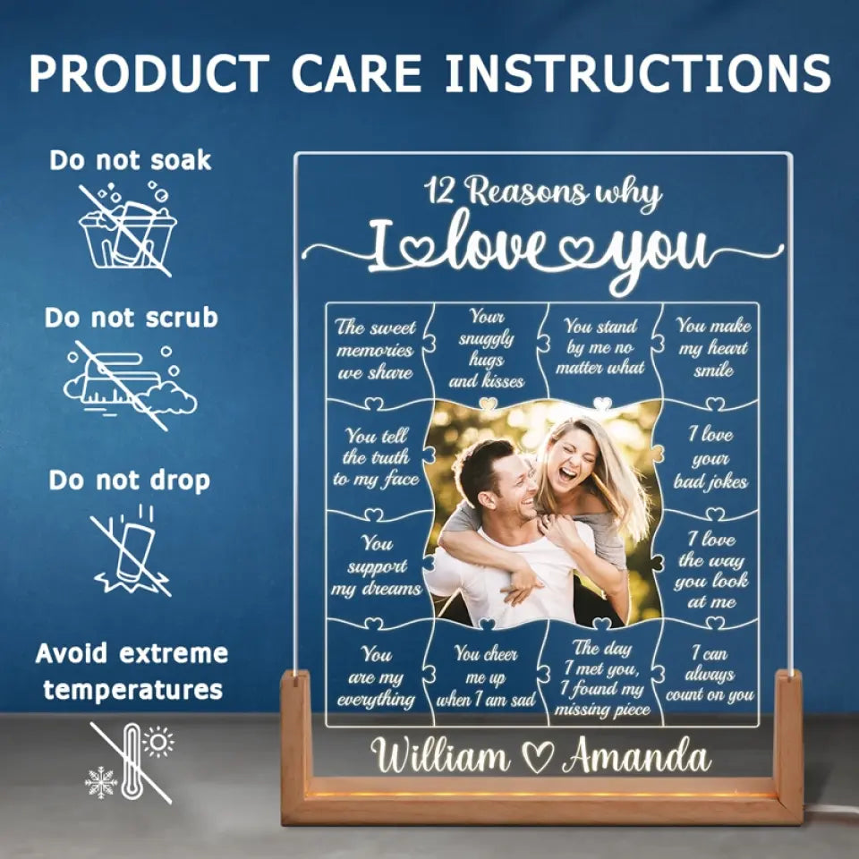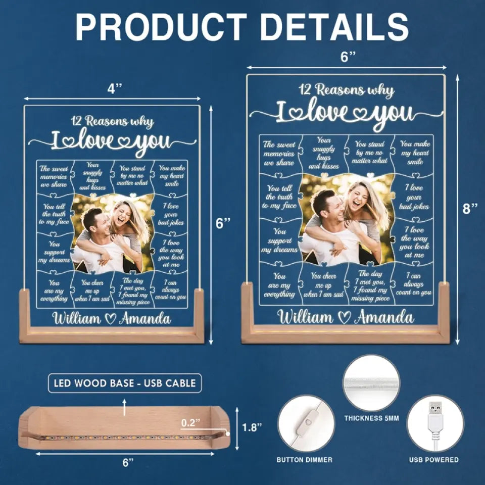 Custom Photo 12 Reasons Why I Love You - Couple Personalized Custom Shaped 3D LED Walnut Night Light - Gift For Husband Wife, Anniversary