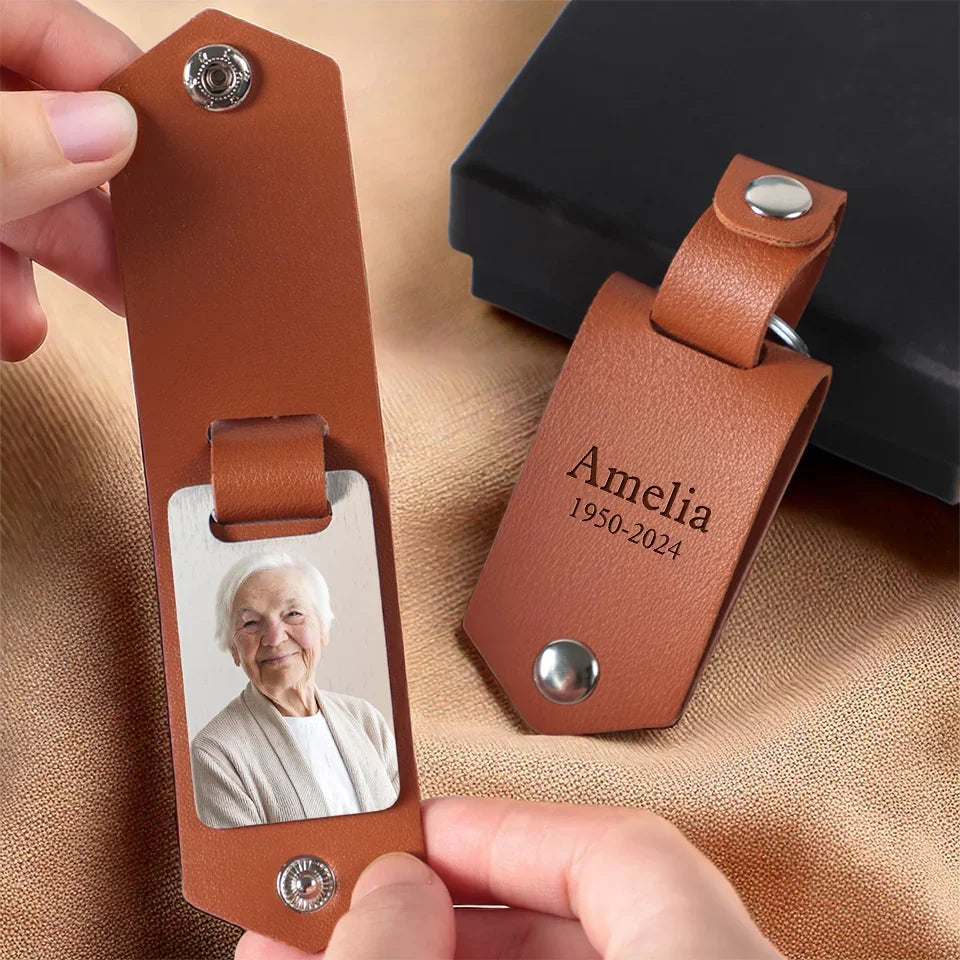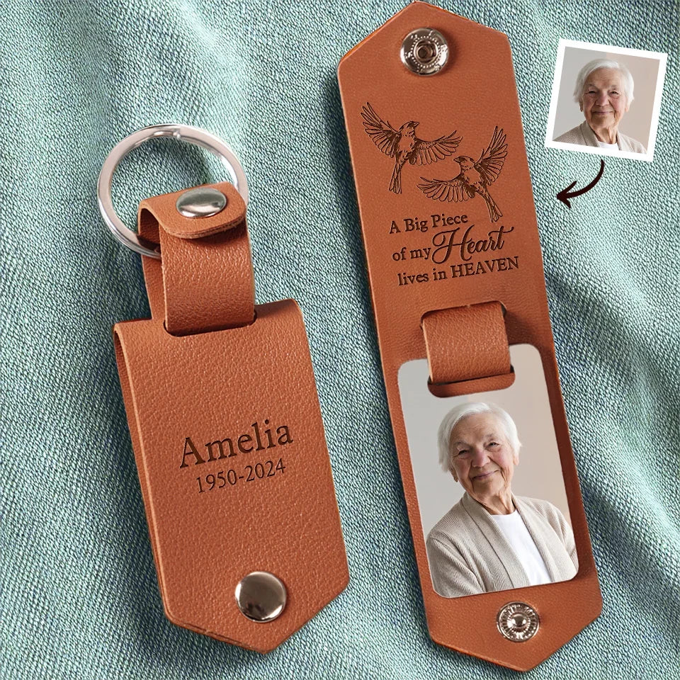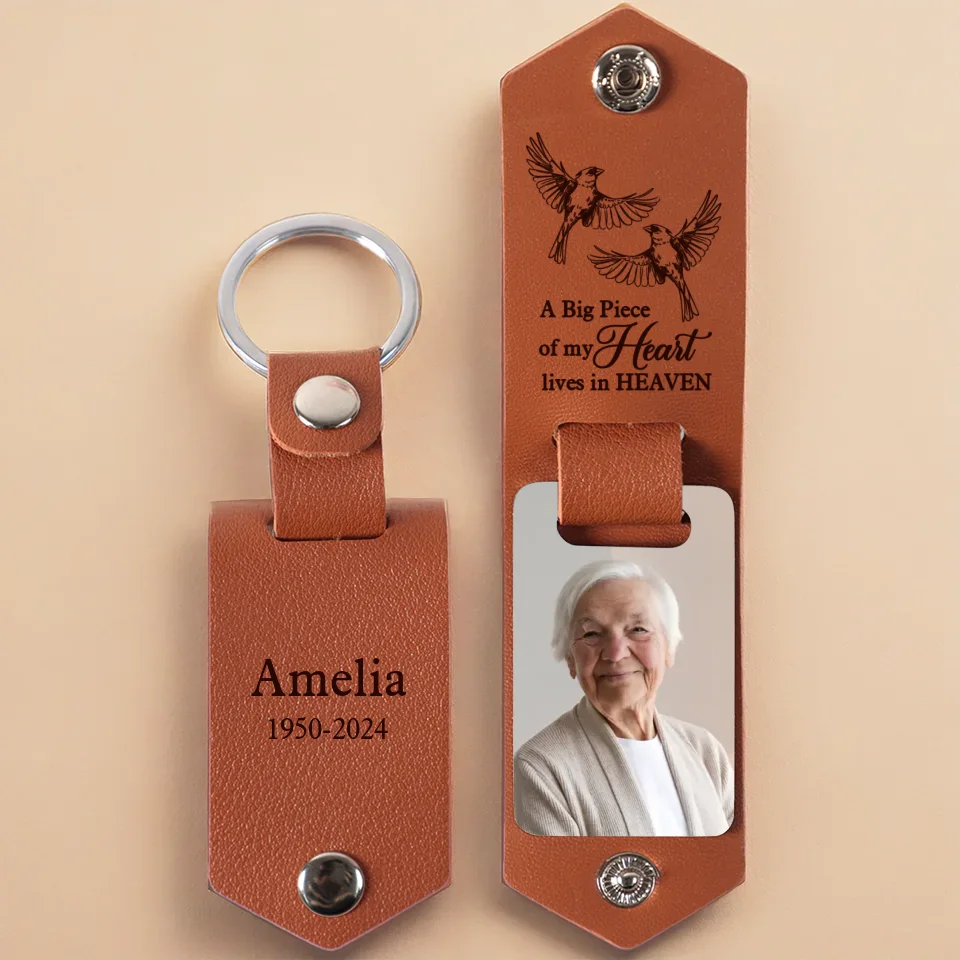 Custom Photo A Big Piece Of My Heart Lives In Heaven - Memorial Personalized Custom Engraved Leather Keychain - Sympathy Gift For Family Members