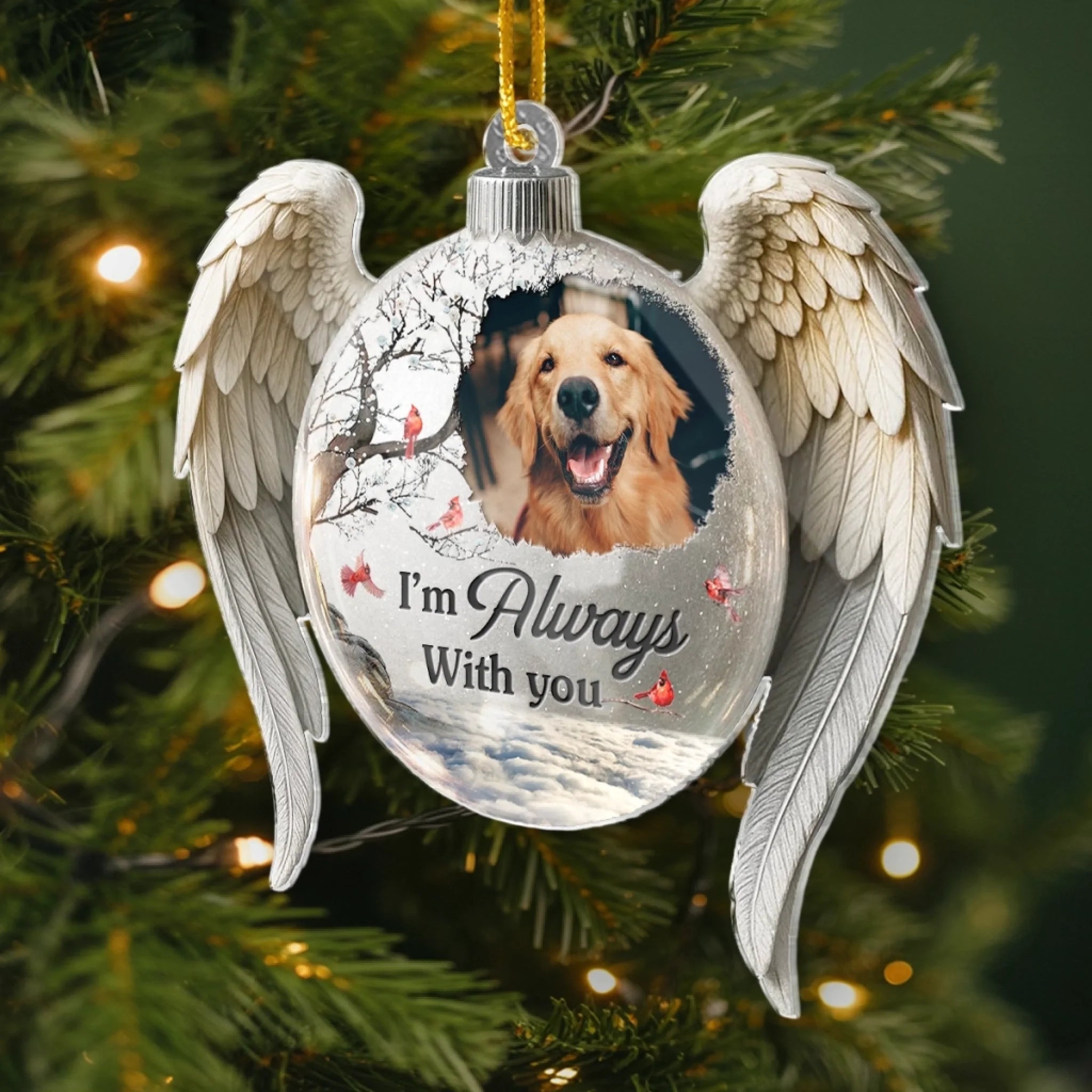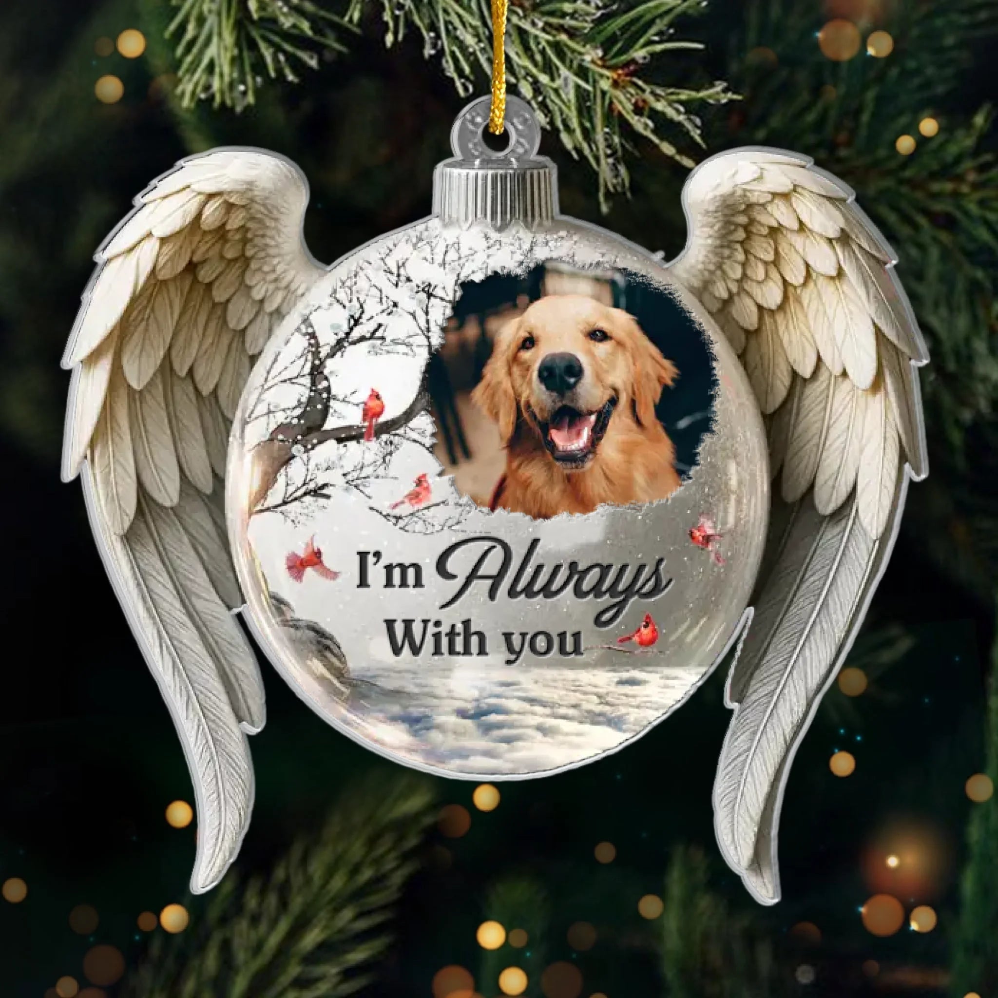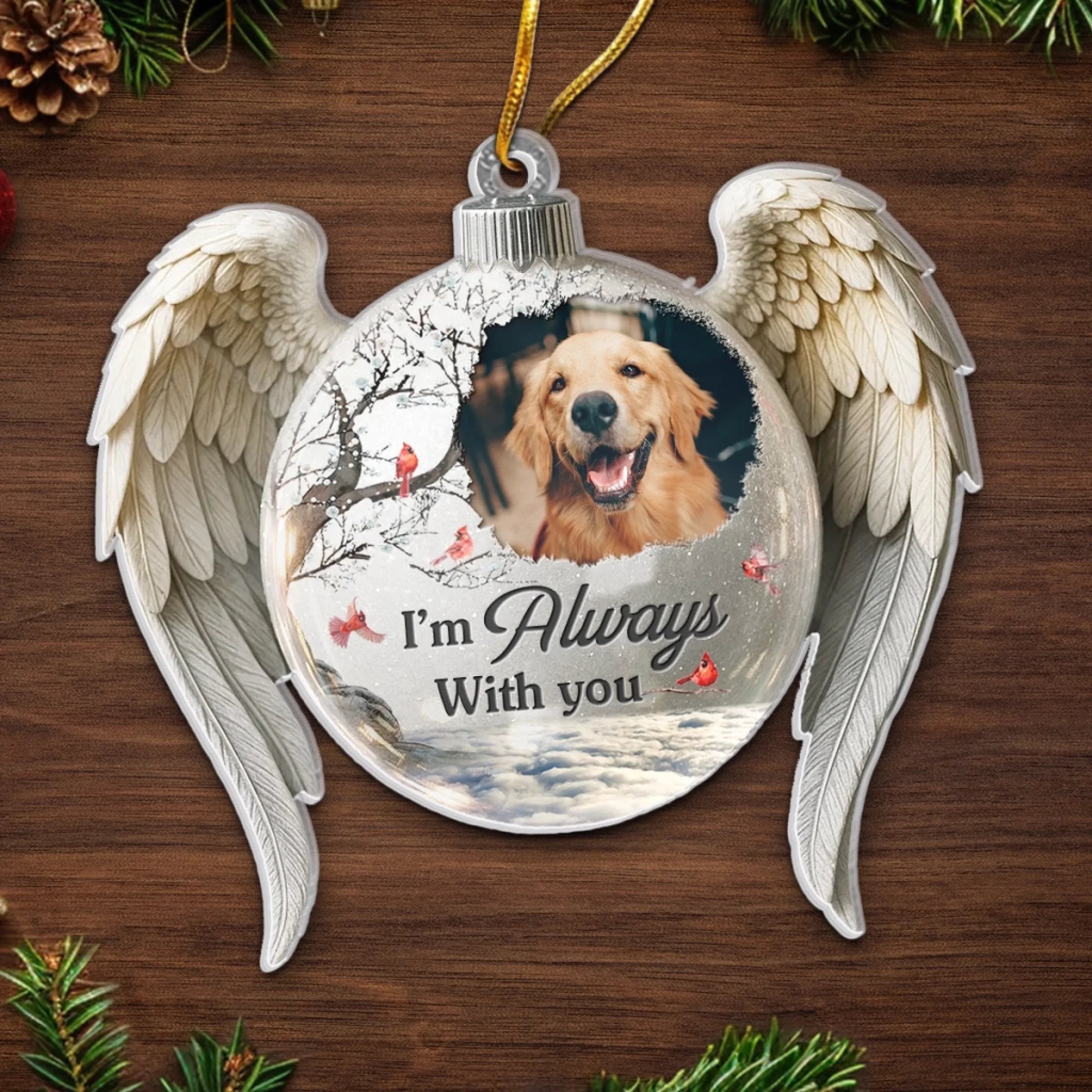 Custom Photo Acrylic Ornament - Personalized Pet Christmas Memorial Sympathy Gifts For Dogs, Cats - Forever In Our Hearts Pawprints Remain