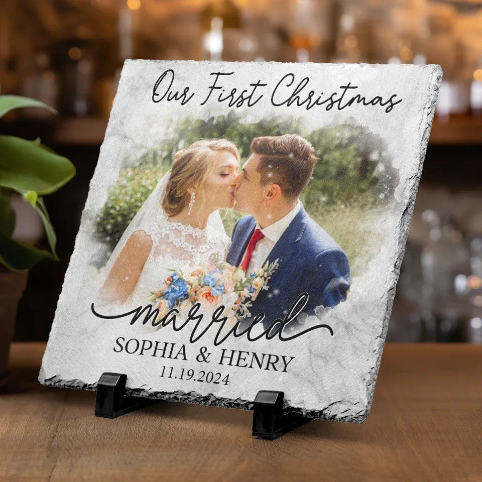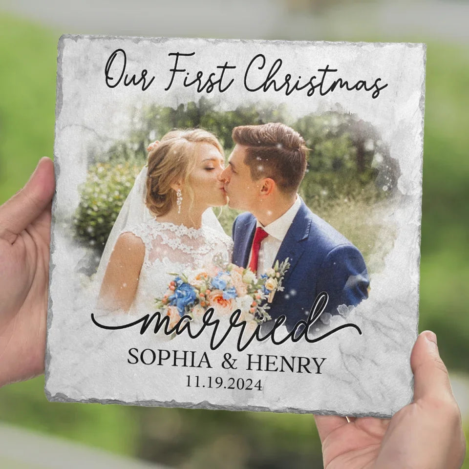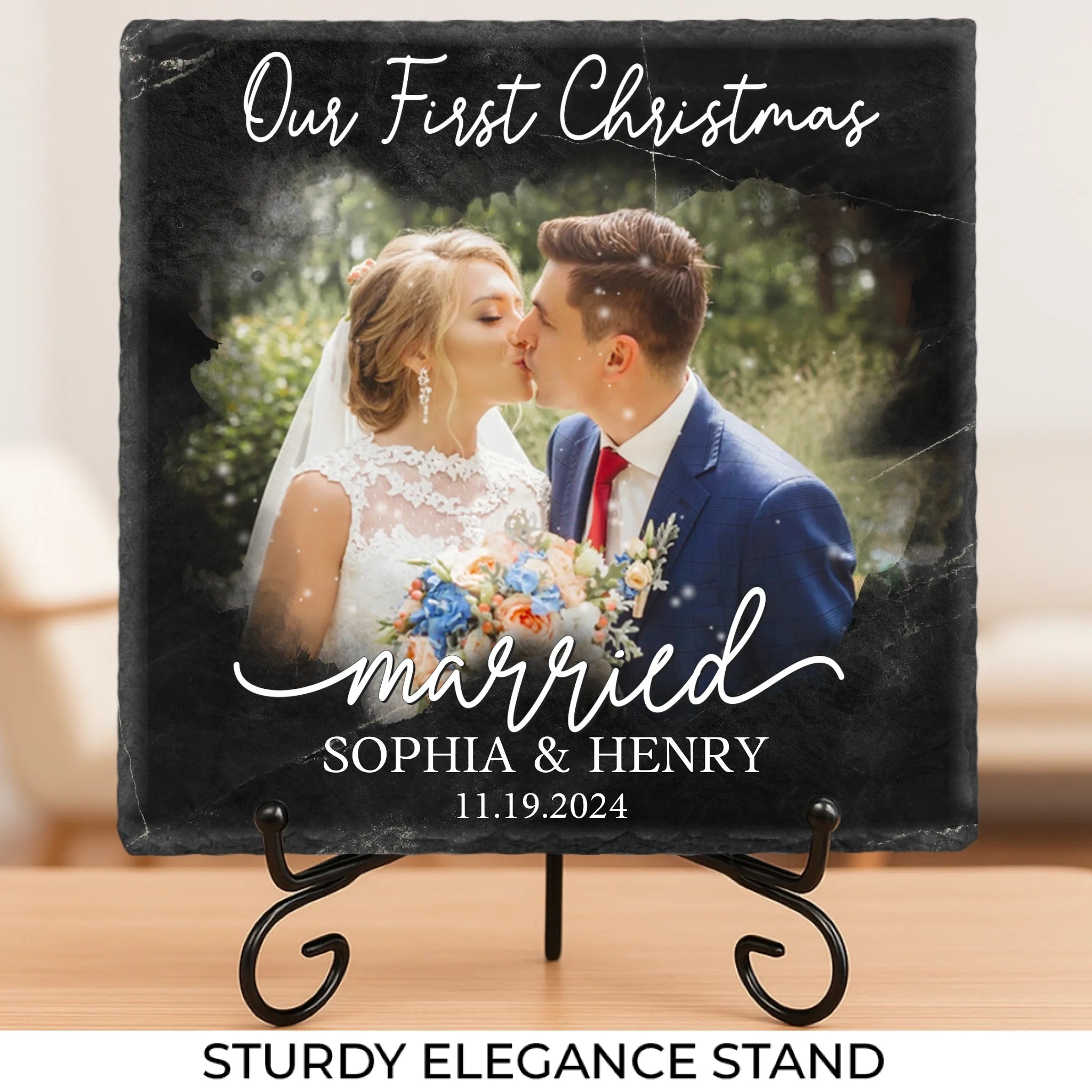 Custom Photo Christmas Is Sweeter With You By My Side - Couple Personalized Custom Square Shaped Stone With Stand - Christmas Gift For Husband Wife, Anniversary, First Christmas