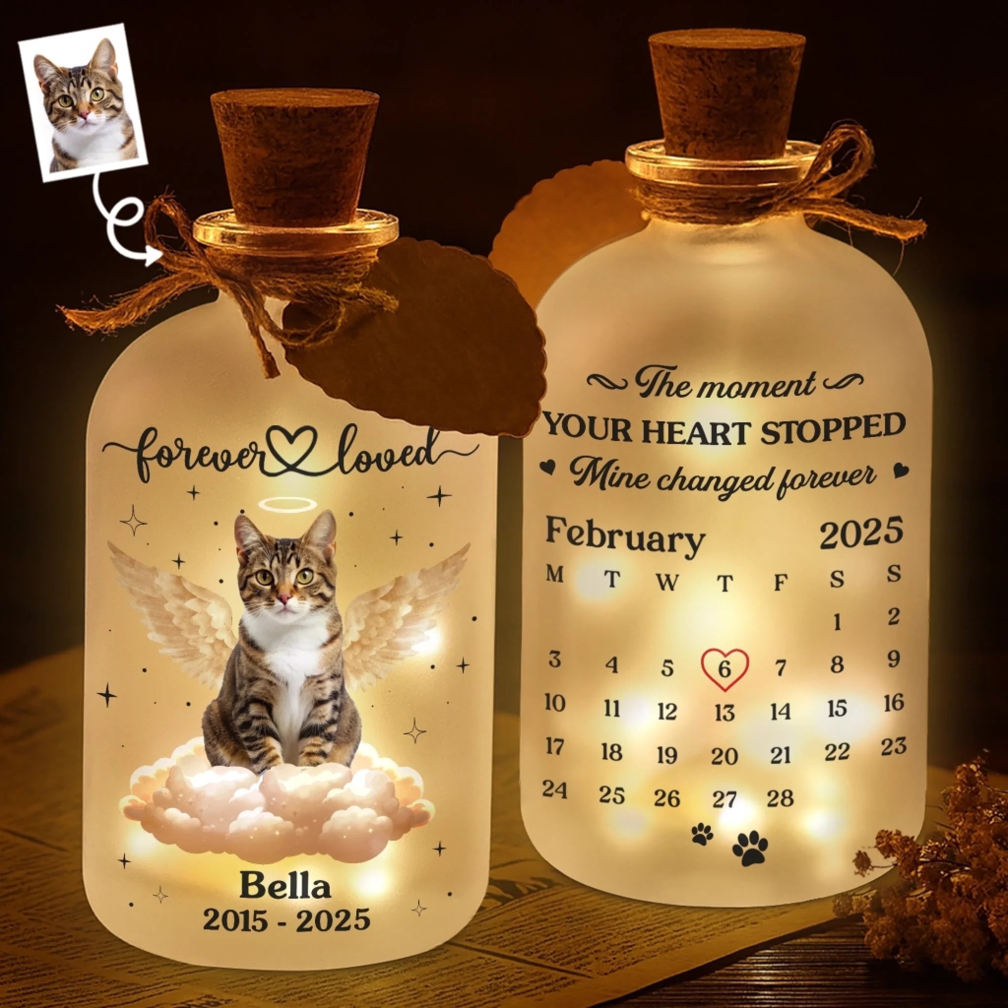 Custom Photo Glass Bottle LED Light - Personalized Pet Memorial Sympathy Gifts For Dogs, Cats - Always With Me In Spirit