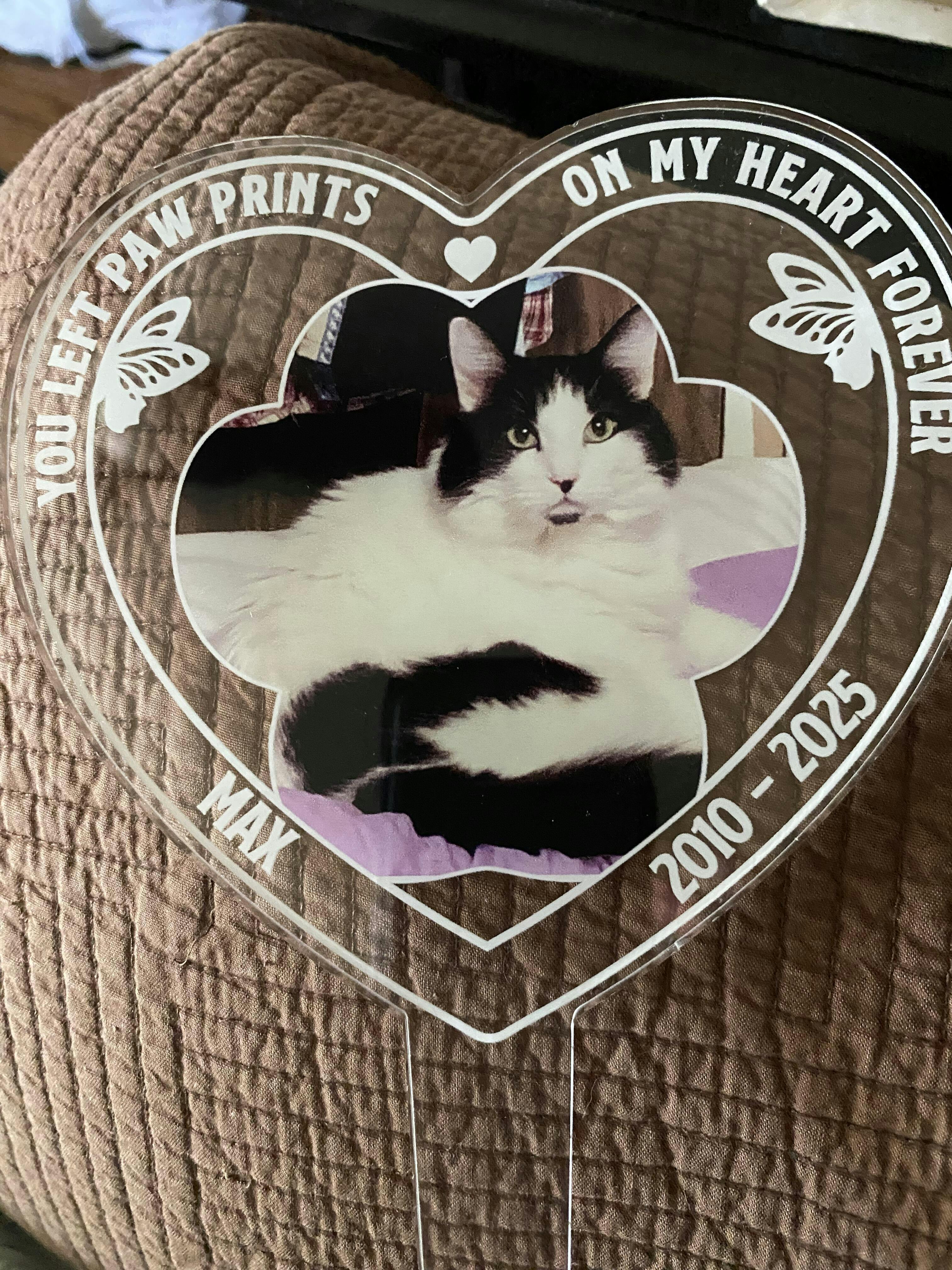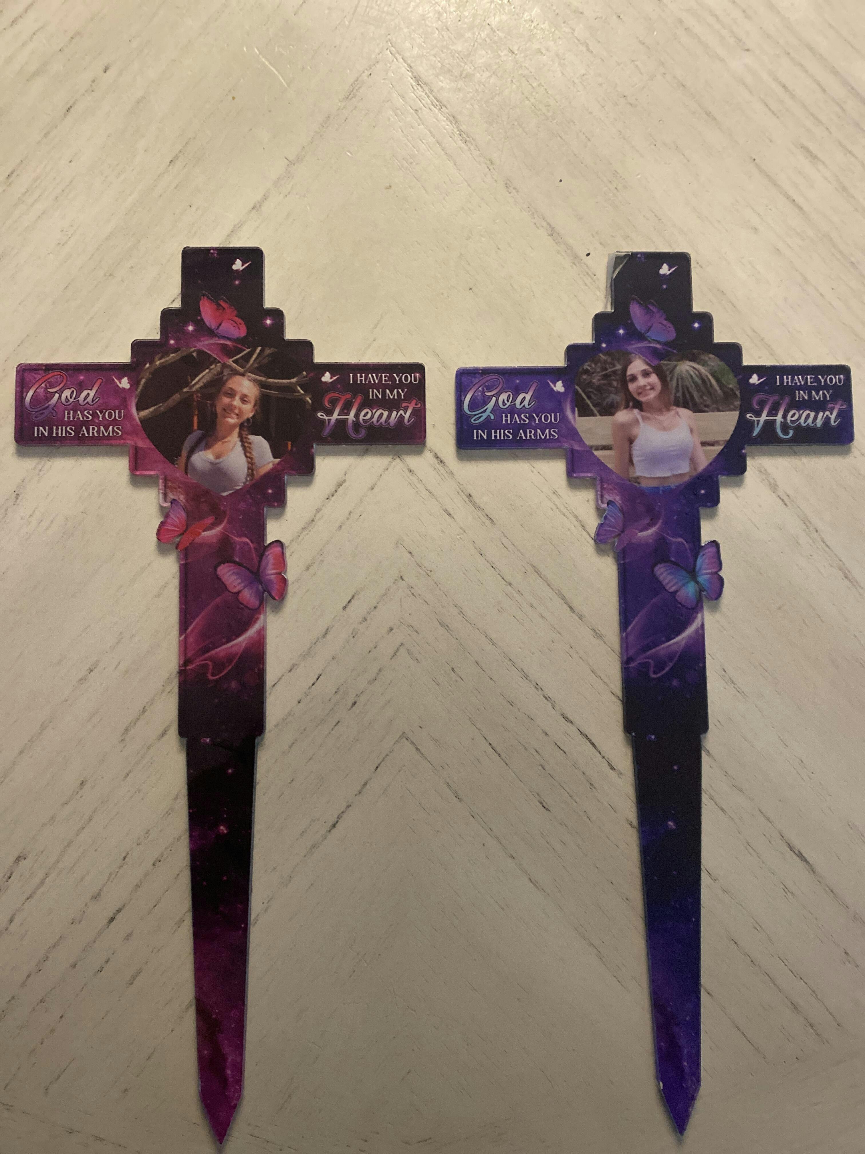 A beautiful memorial acrylic stake for garden decoration, in loving memory of those who are no longer with us. These memorial gifts can be used as a grave marker, memorial plaque or displayed amongst plants.