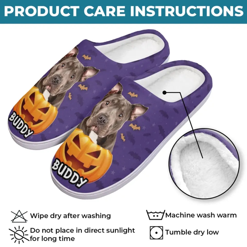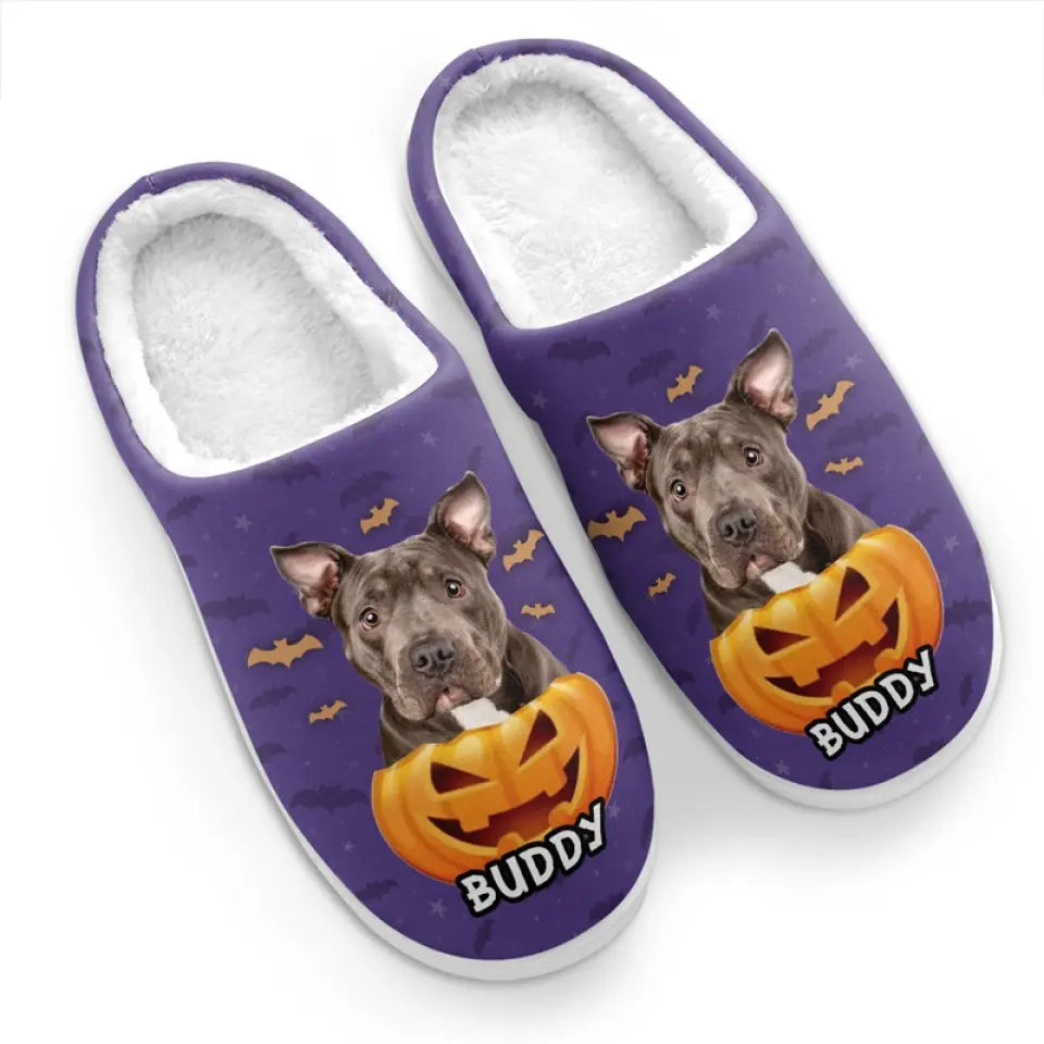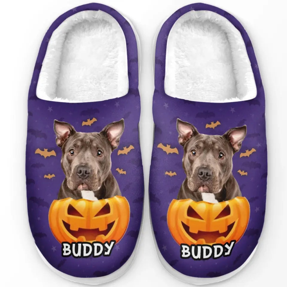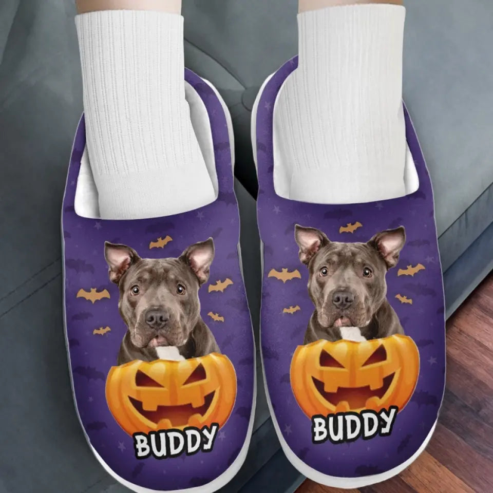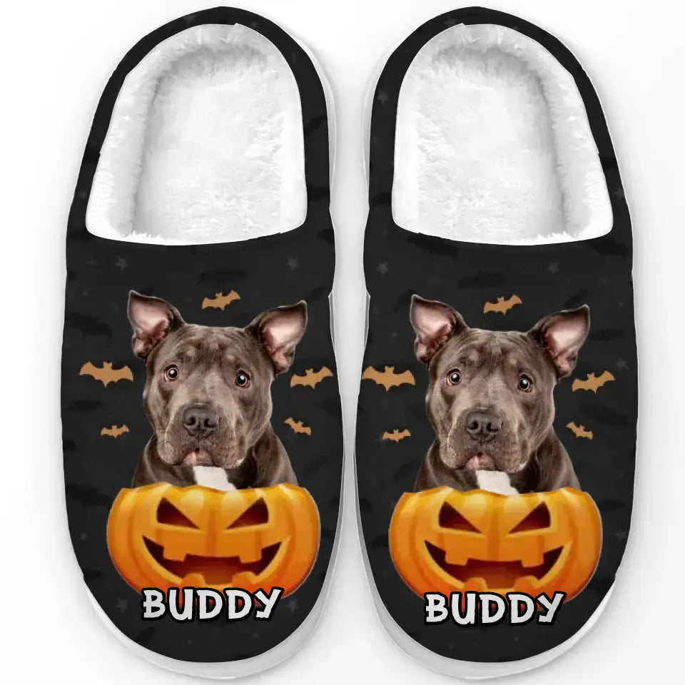 Custom Photo Halloween With A Furry Friend - Dog & Cat Personalized Custom Fluffy Slippers - Halloween Gift For Pet Owners, Pet Lovers