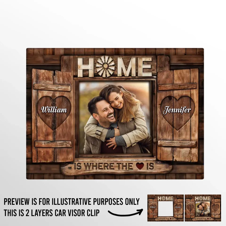 Custom Photo Home Is Where The Love Is - Couple Personalized Custom Car Visor Clip - Christmas Gift For Husband Wife, Anniversary
