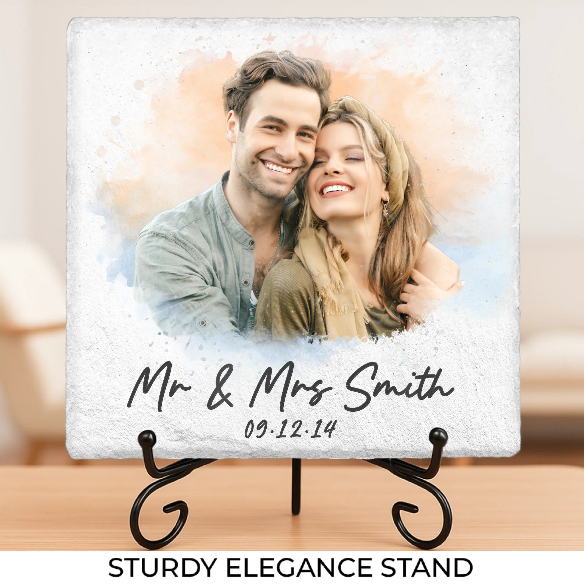 Custom Photo I Love You Forever - Couple Personalized Custom Square Shaped Stone With Stand - Christmas Gift For Husband Wife, Anniversary
