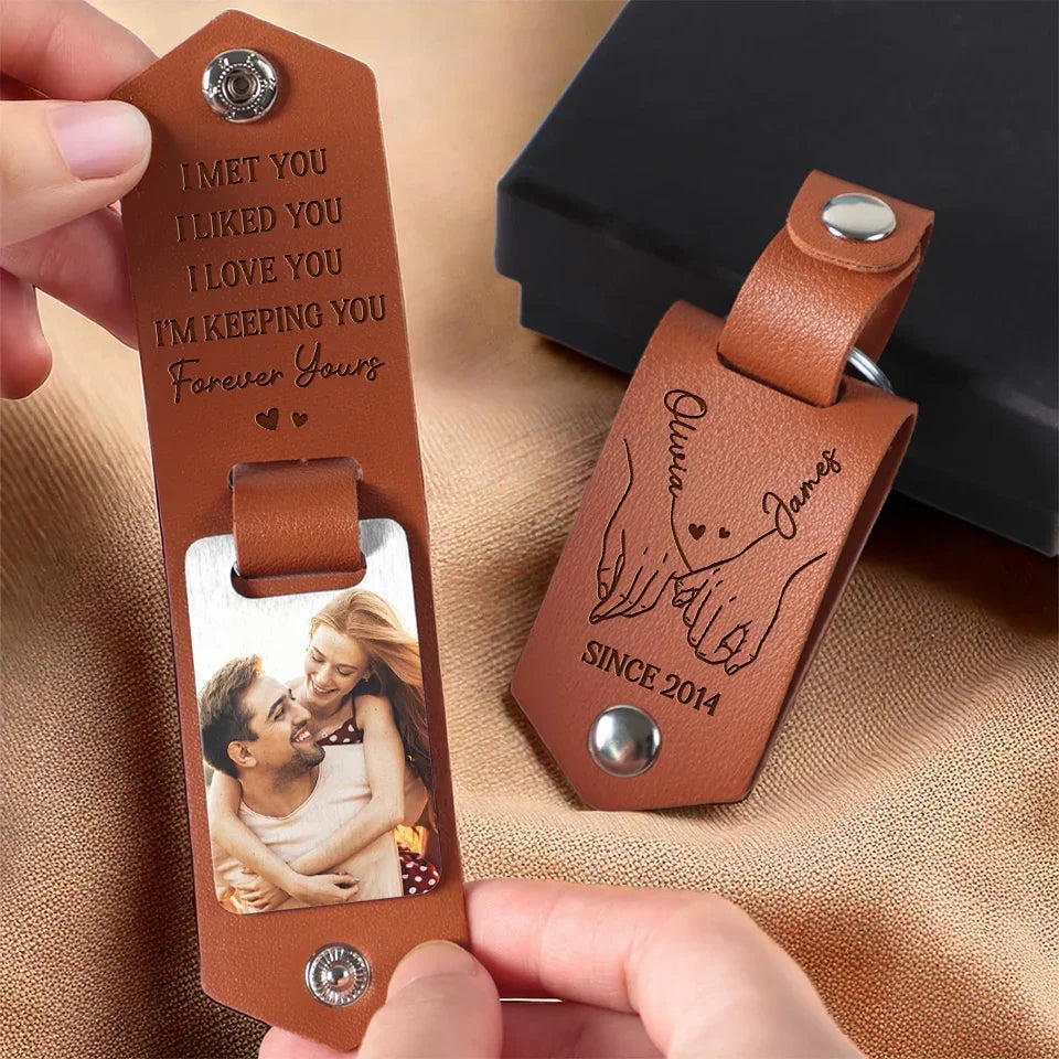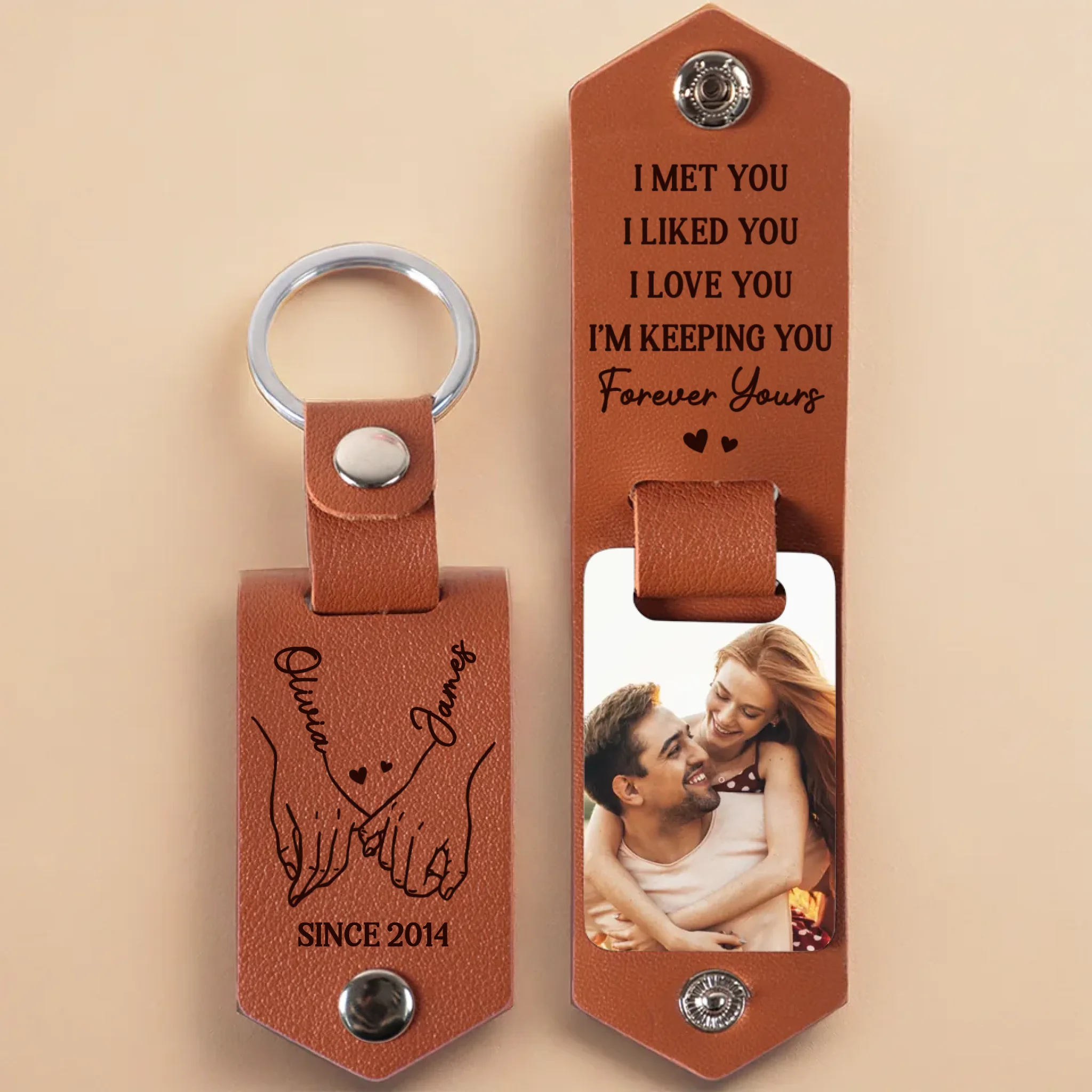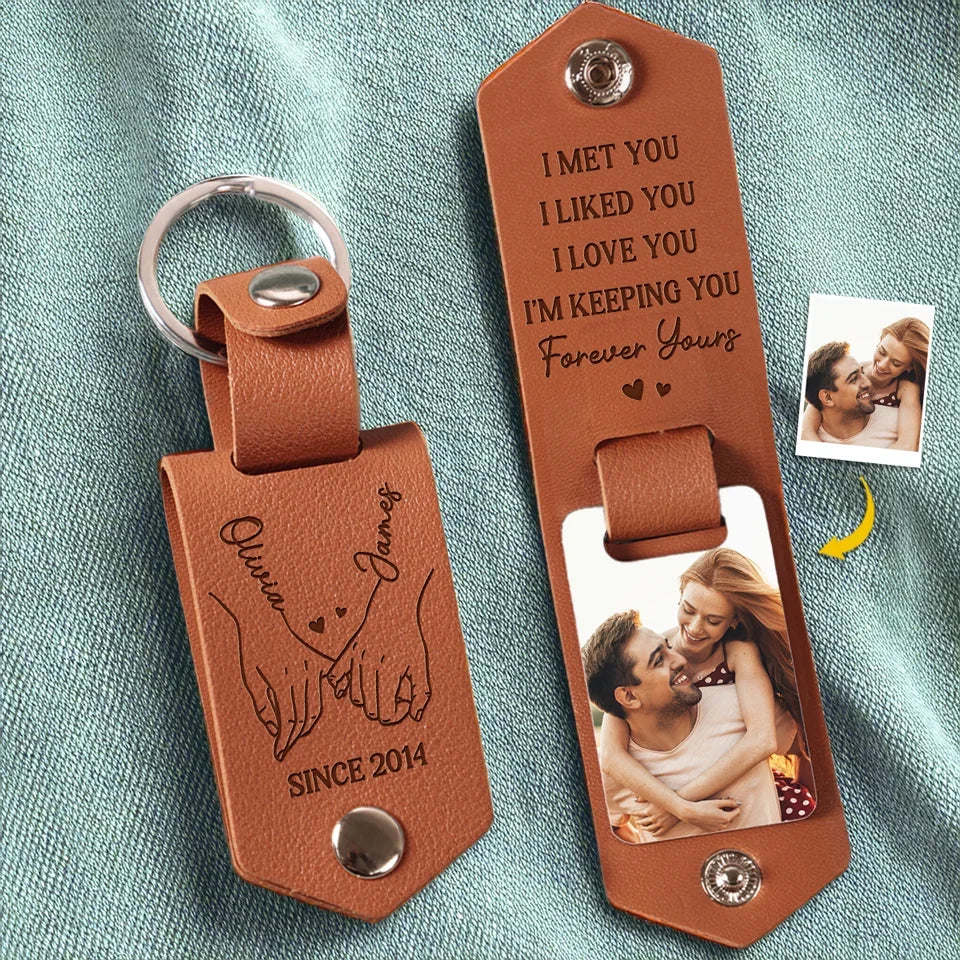 Custom Photo I'm Keeping You Forever Yours - Couple Personalized Custom Engraved Leather Keychain - Gift For Husband Wife, Anniversary