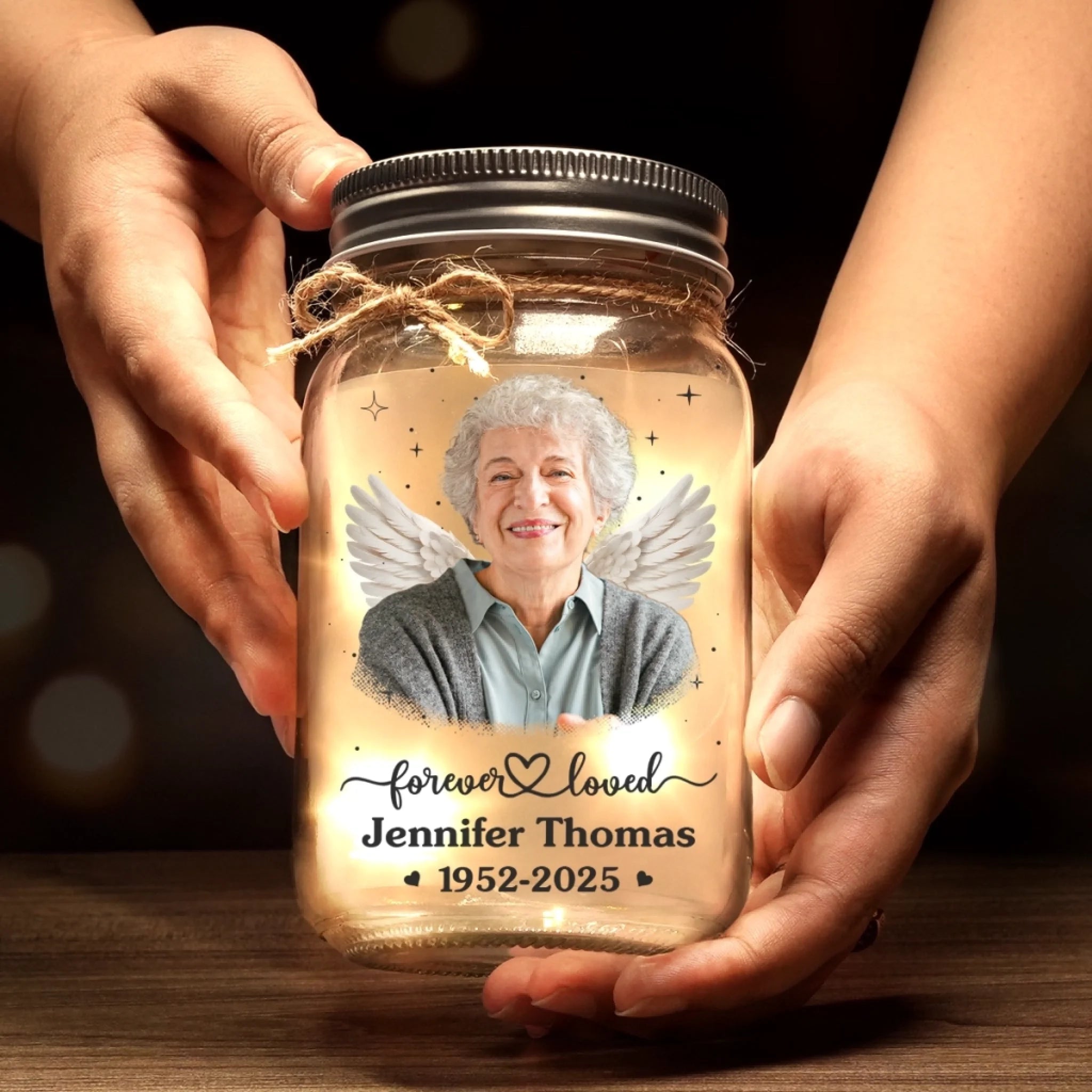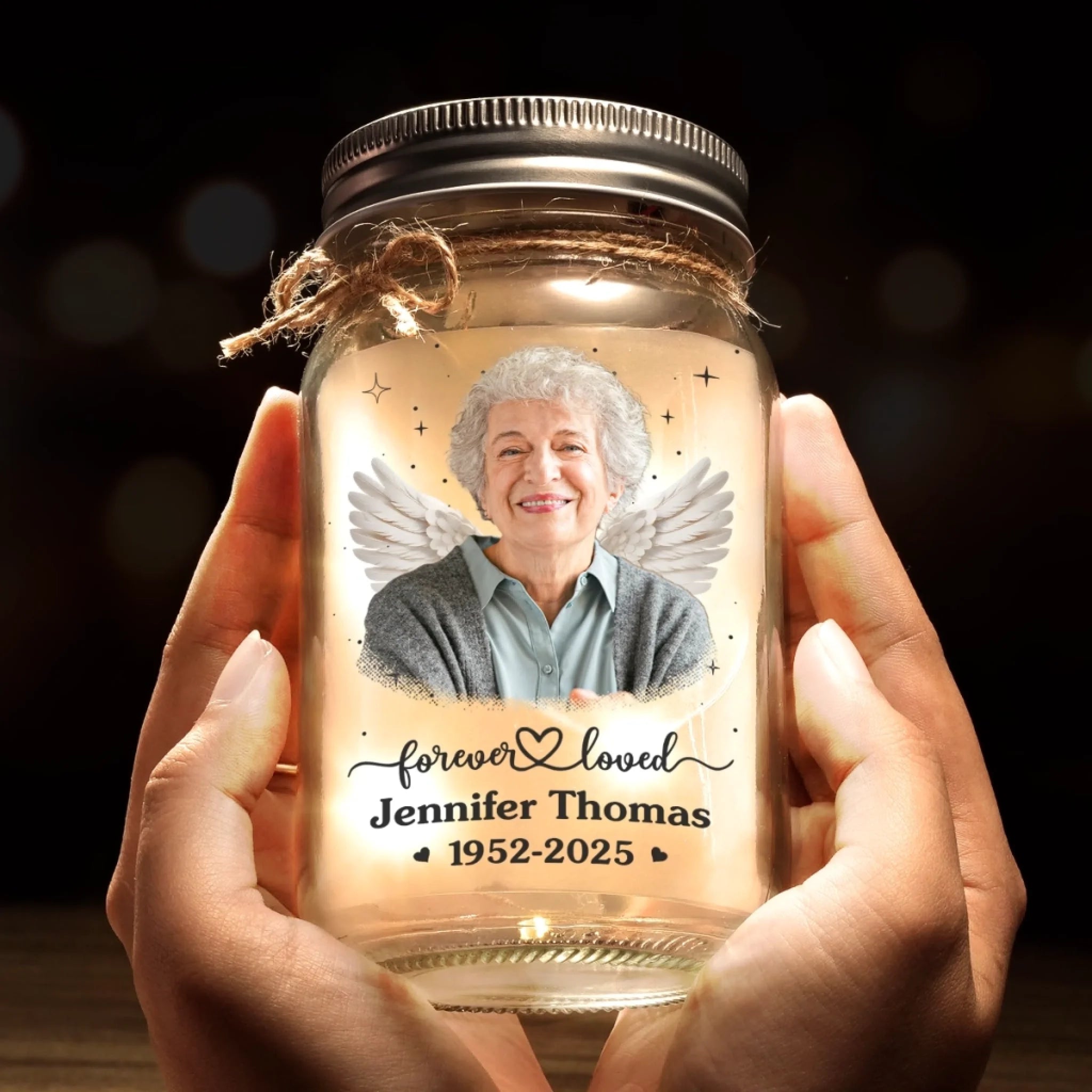 Custom Photo Mason Jar Light - Personalized Memorial Sympathy Gifts For Loss Of Mom, Dad - Your Memory Lives With Us