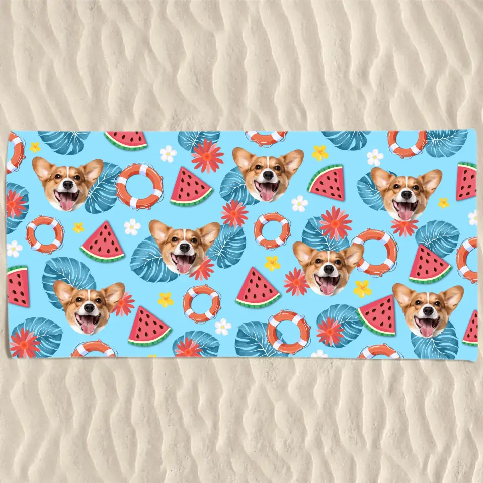 Custom Photo Sandy Paws, Salty Kisses - Dog & Cat Personalized Custom Beach Towel - Summer Vacation Gift, Birthday Pool Party Gift For Pet Owners, Pet Lovers