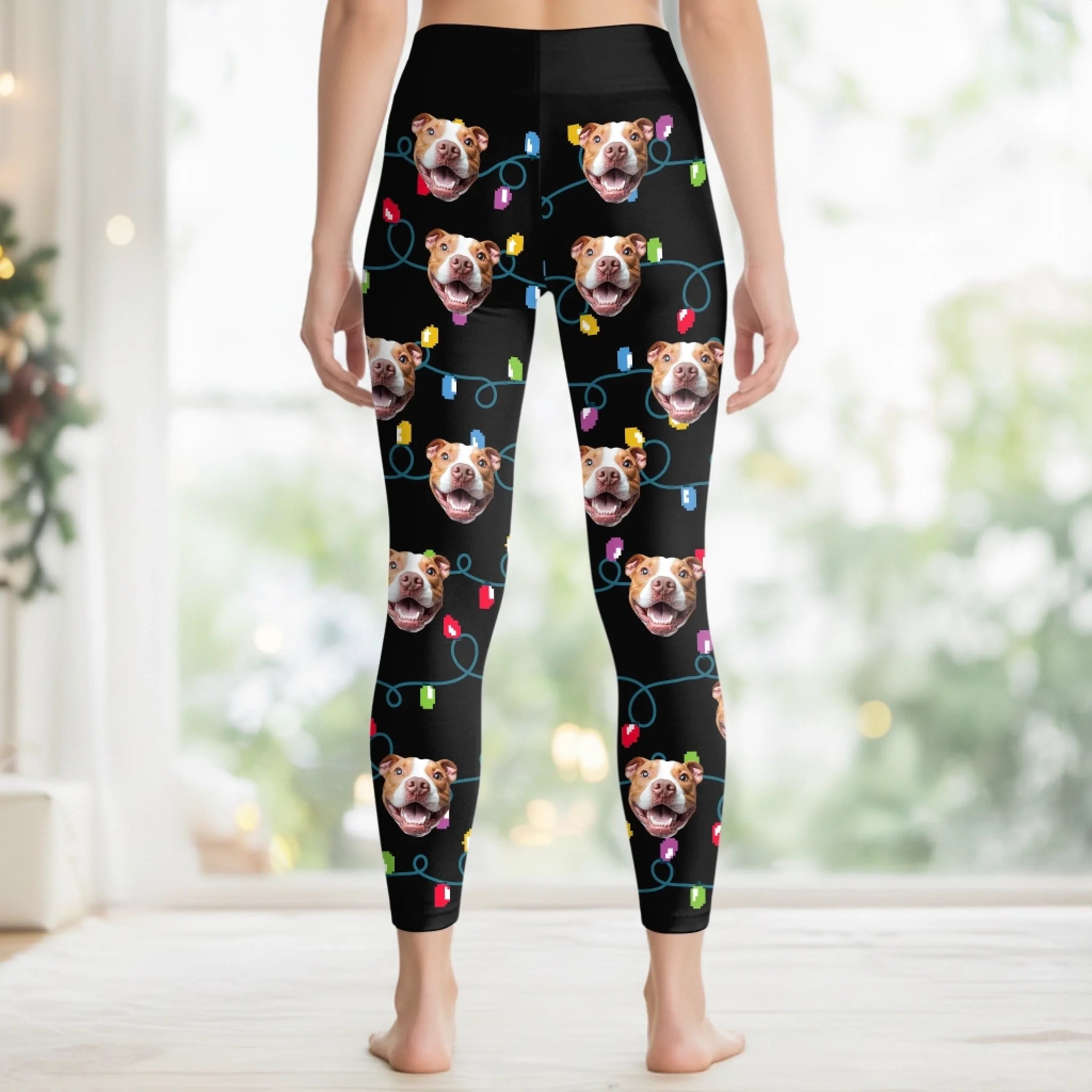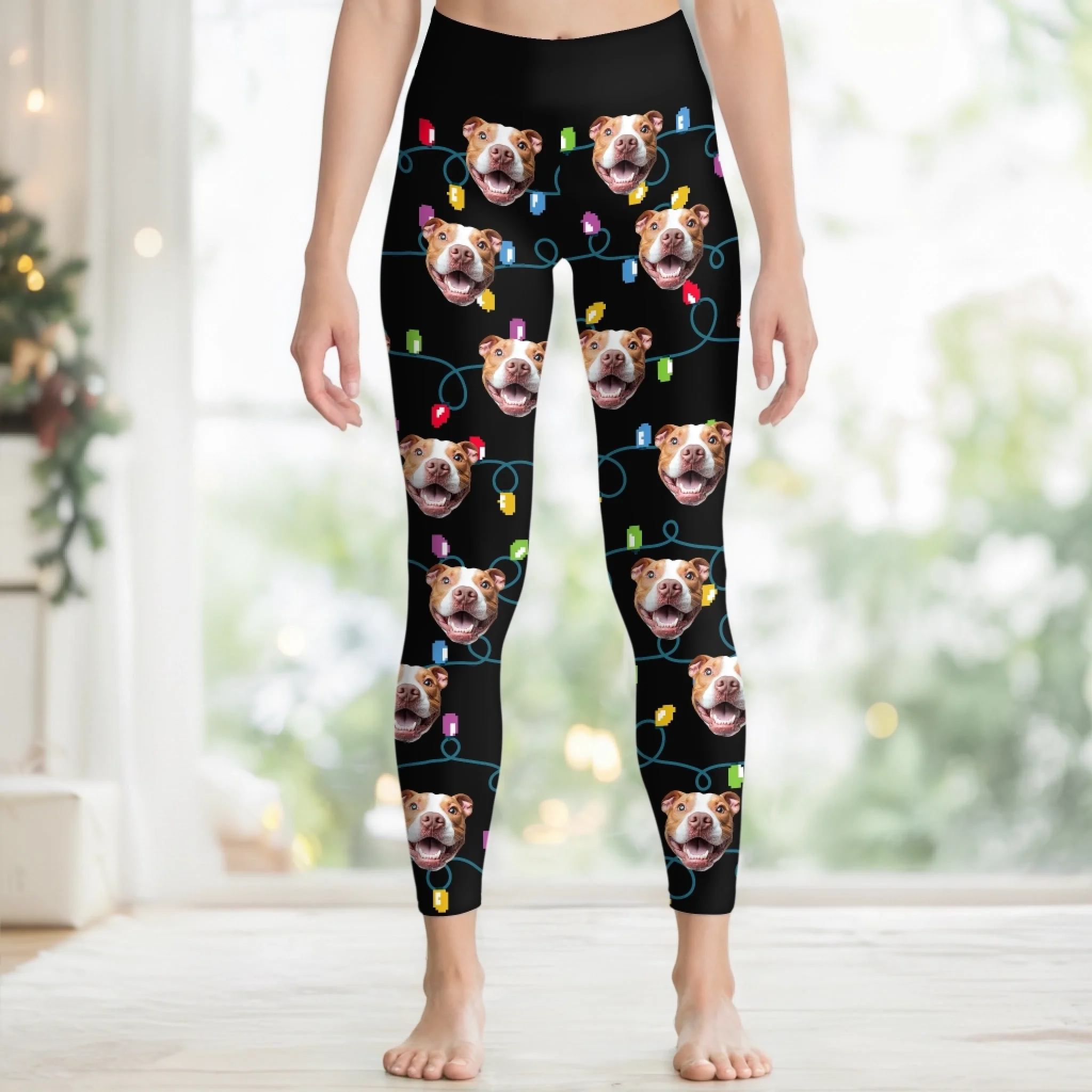 Custom Photo Women Leggings - Personalized Christmas Birthday Gifts For Dog Cat Lovers, Dog Dad And Mom, Cat Owners - Festive Fur Baby Glow