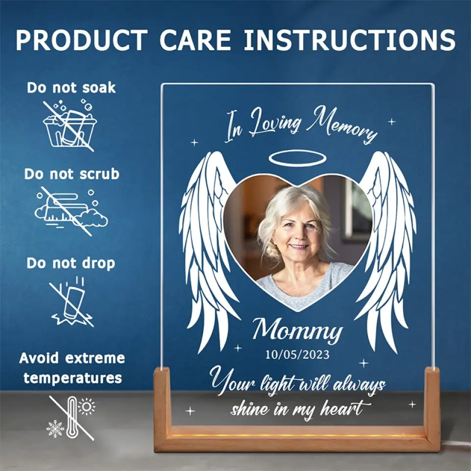 Custom Photo Your Light Will Always Shine In My Heart - Memorial Personalized Custom Shaped 3D LED Walnut Night Light - Sympathy Gift For Family Members