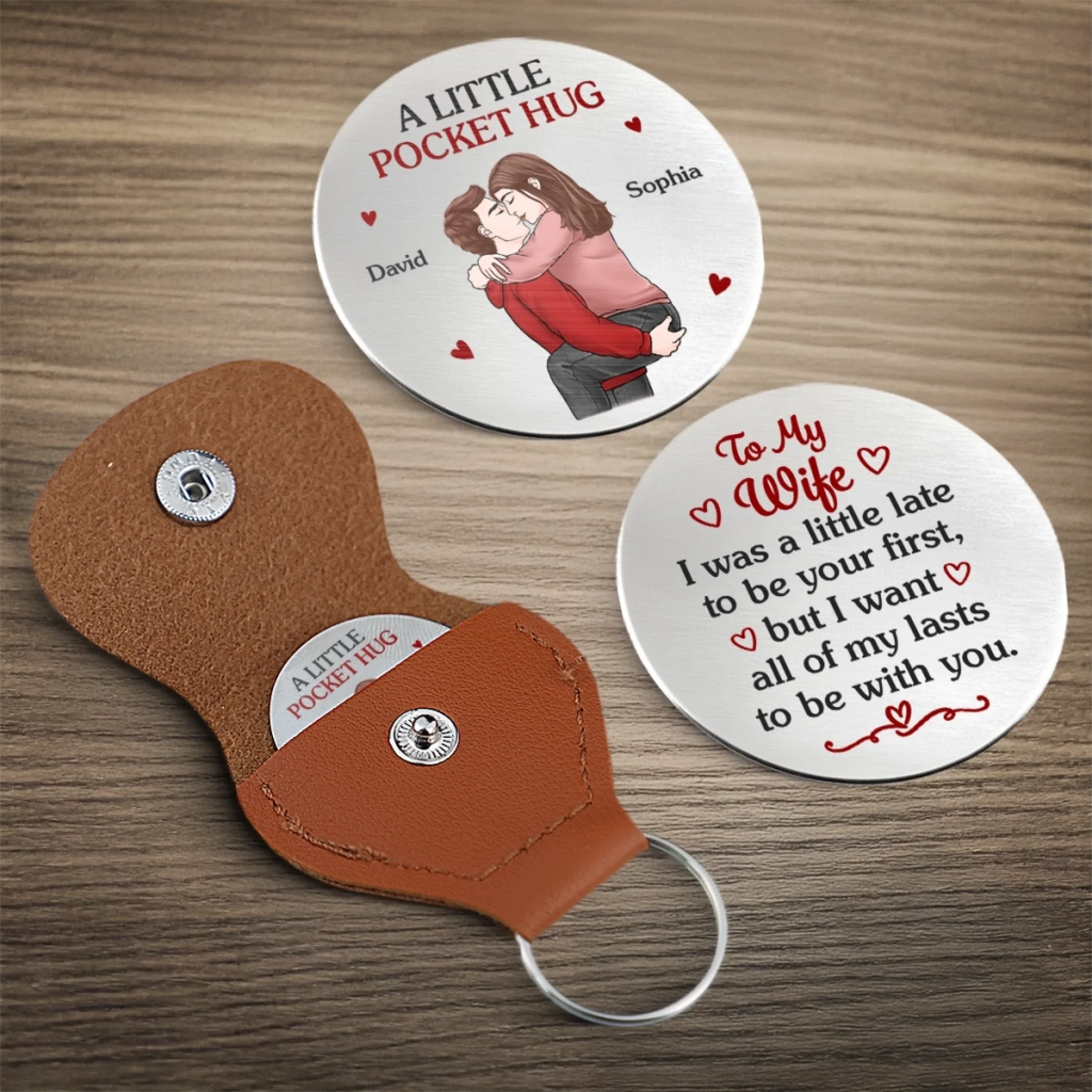 Custom Pocket Hug - Personalized Anniversary Christmas Wedding Gifts For Husband And Wife, Him And Her - A Little Hug To Keep With You