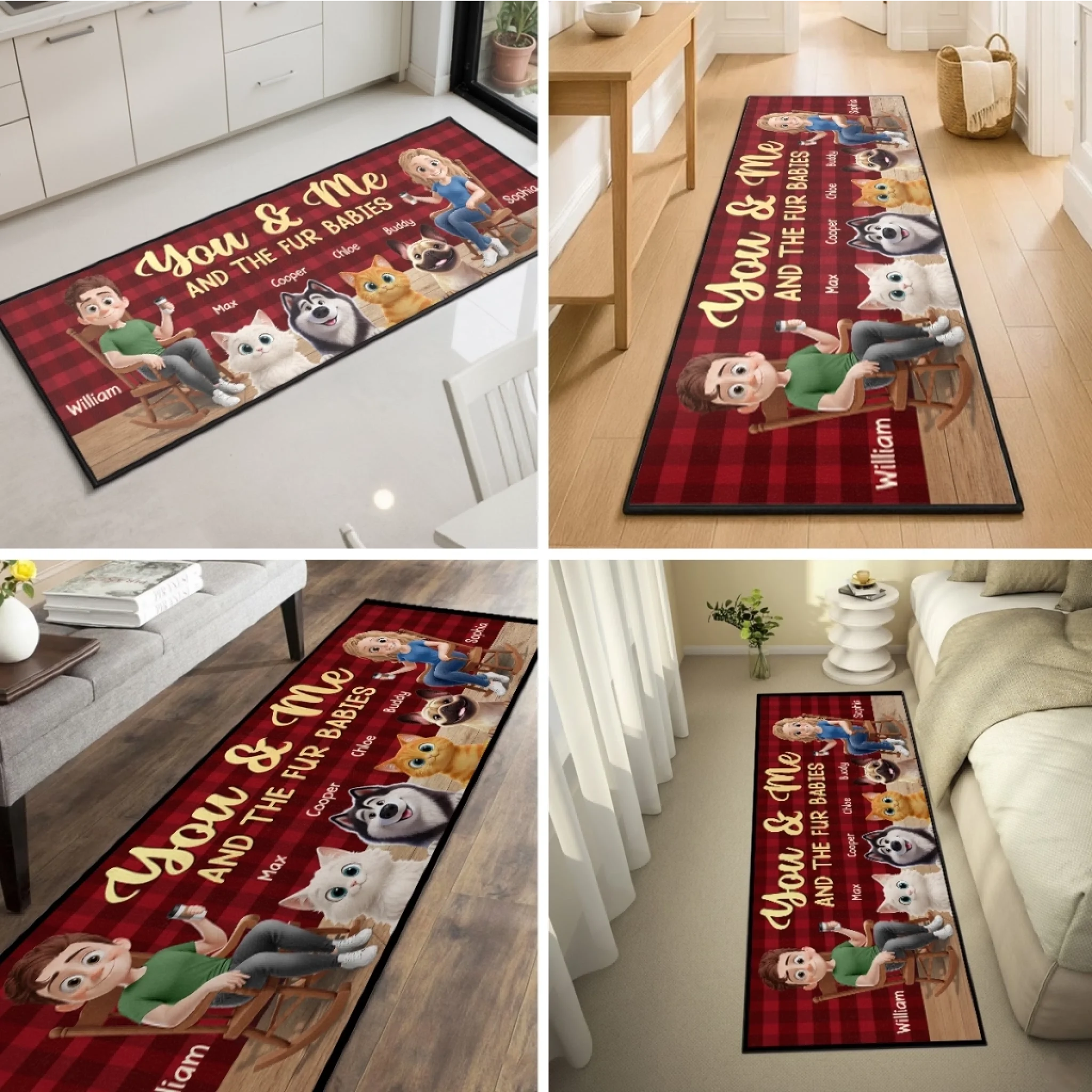 Custom Runner Rug - Personalized Anniversary Wedding Gifts For Husband And Wife, Dog Cat Lovers - Fur Babies Approved This Home