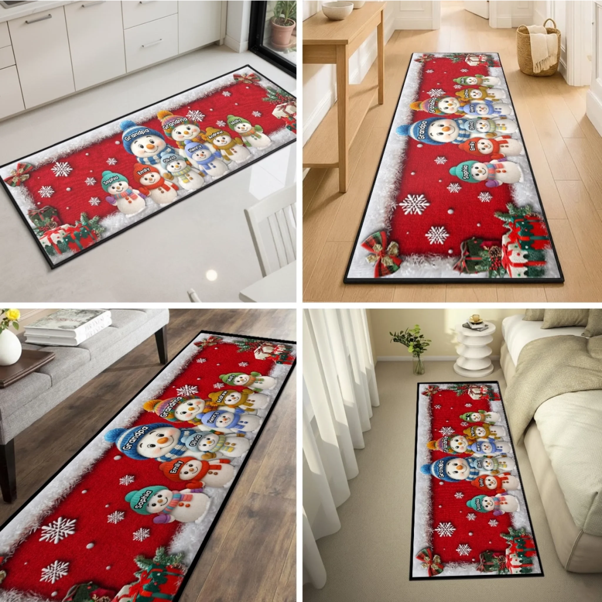 Custom Snowman Runner Rug - Personalized Christmas Birthday Gifts For Grandpa, Grandma - Where Love Finds Its Way Home