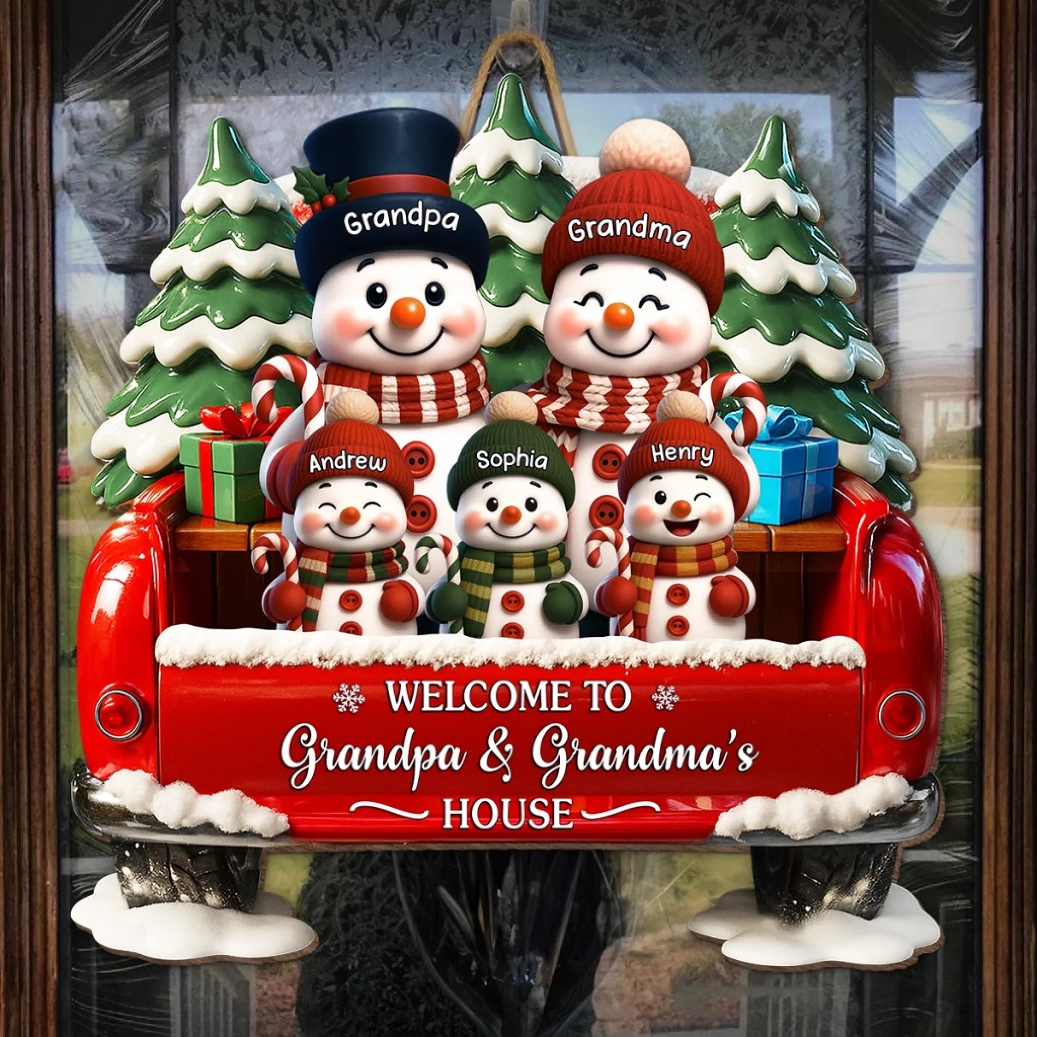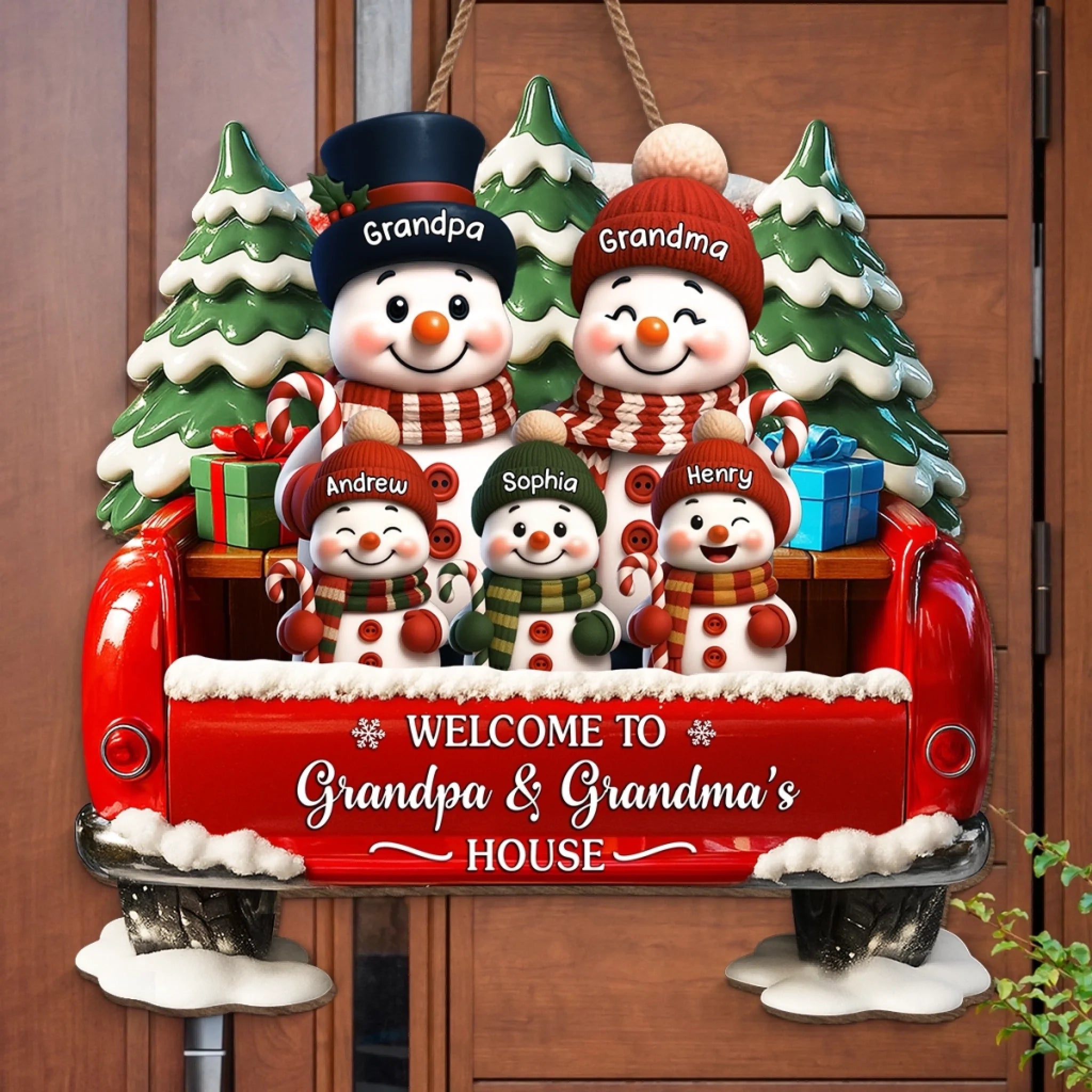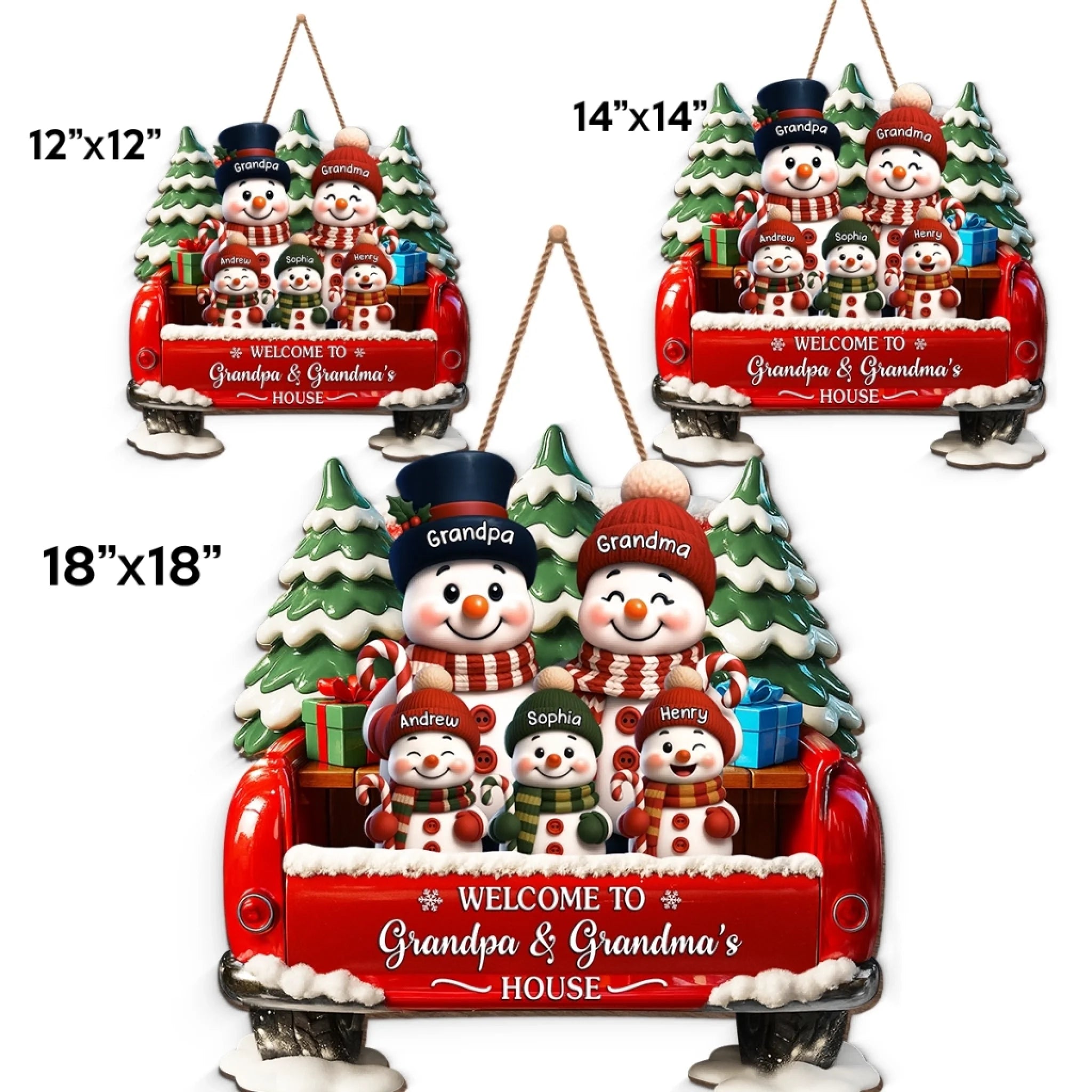 Custom Snowman Wood Sign - Personalized Christmas Birthday Gifts For Grandpa, Grandma - Love Built This Home
