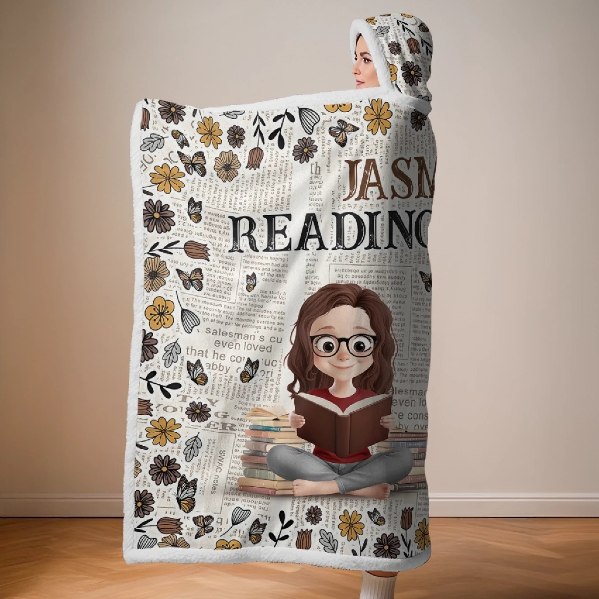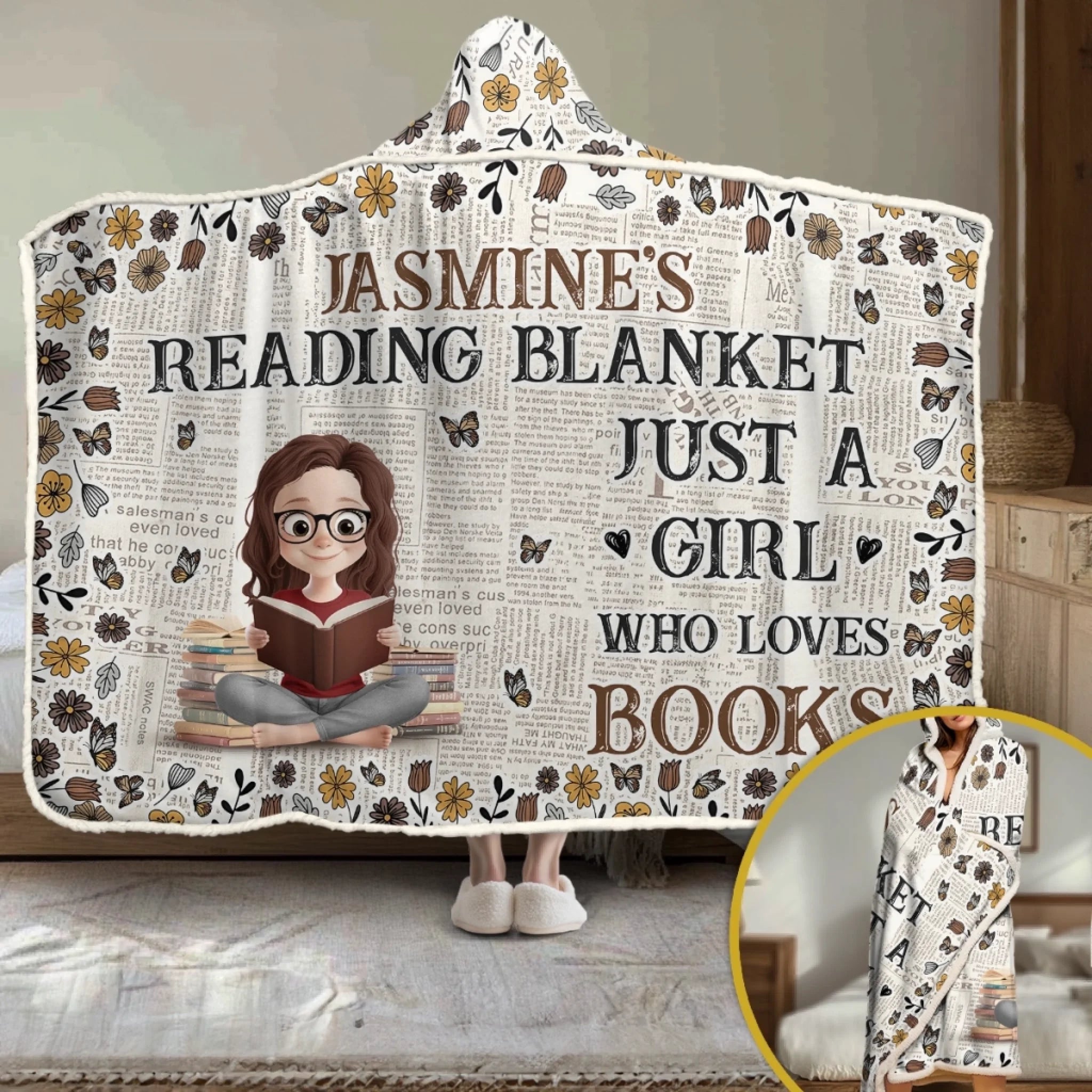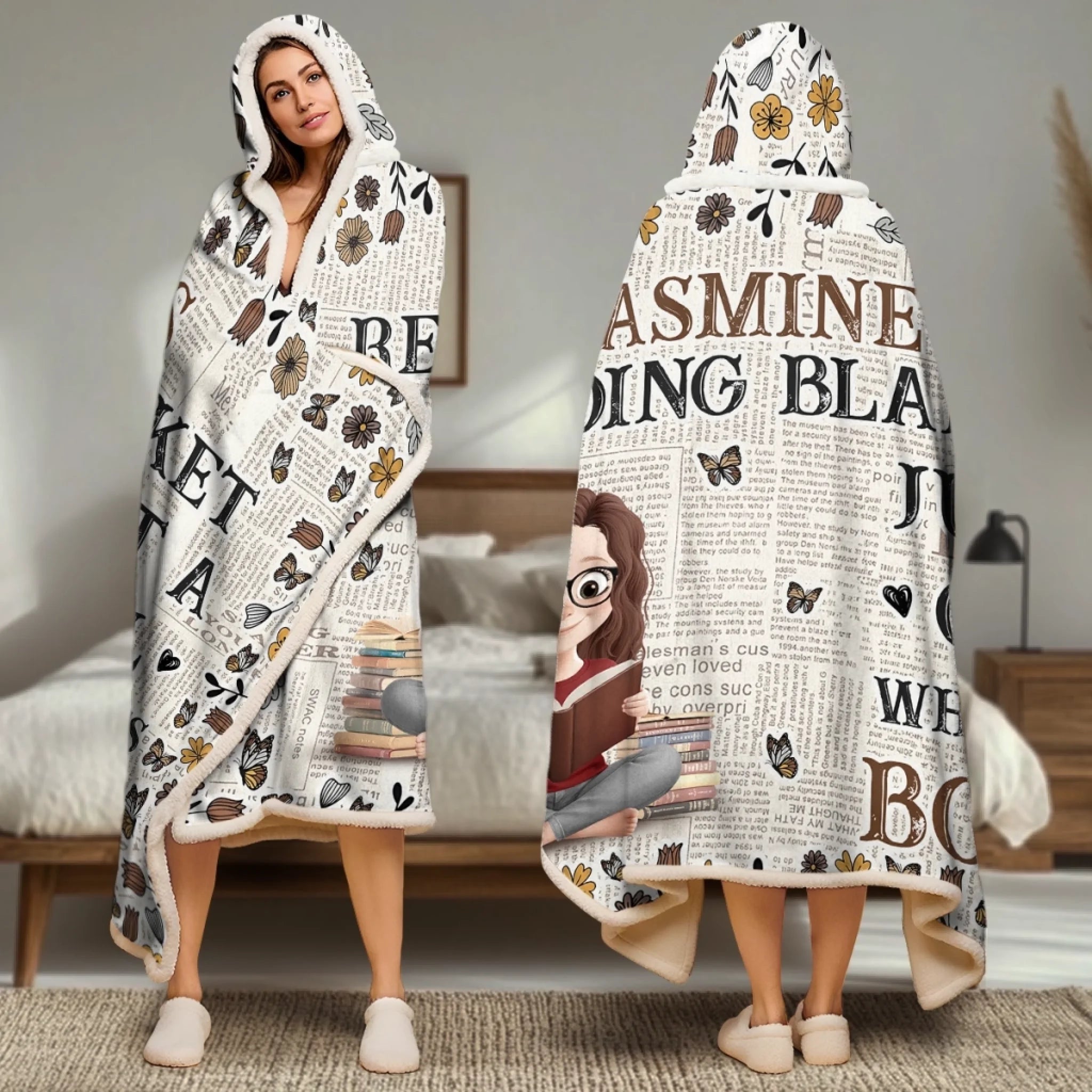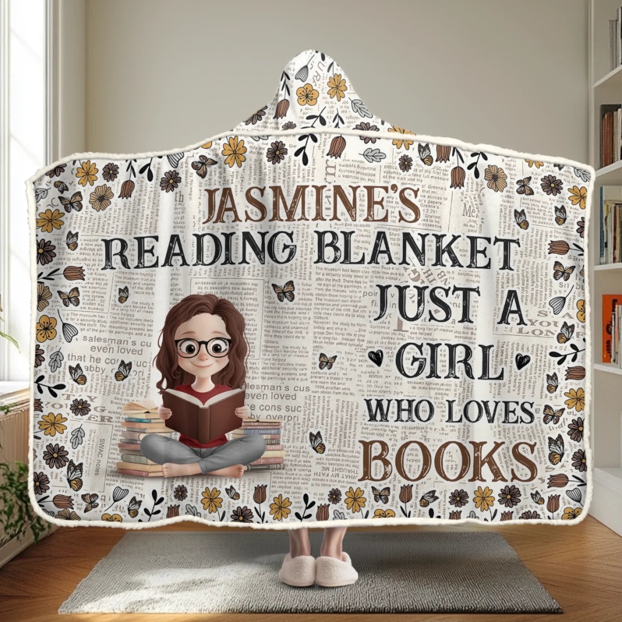Custom Snuggle Blanket, Hoodie Blanket - Personalized Christmas Bookish Gifts For Book Lovers, Bookworms, Readers - For The Girl Who Lives Between Pages