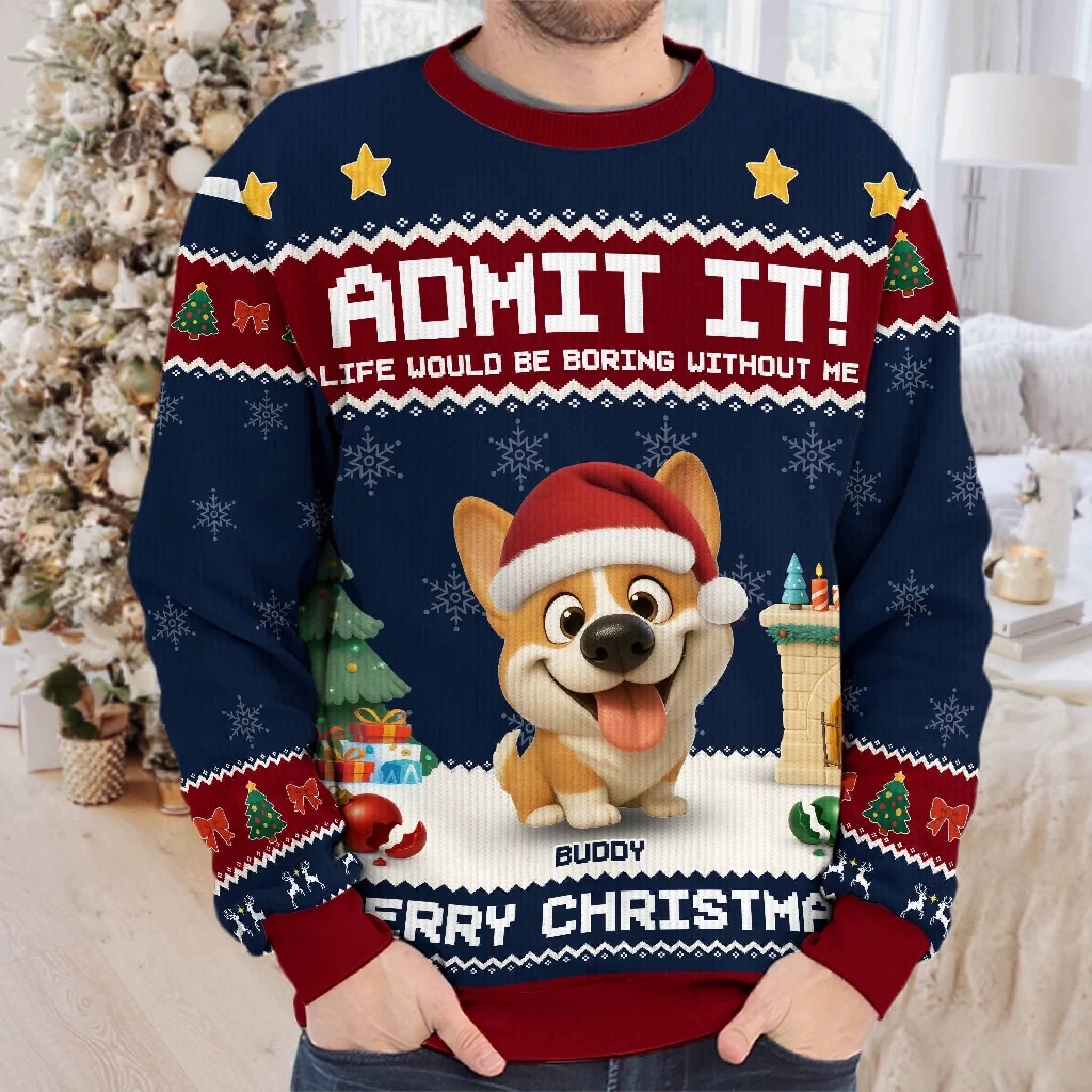 Custom Unisex Ugly Sweatshirt - Personalized Christmas Birthday Gifts For Dog Lovers, Dog Dad And Mom - Life’s Ruff Without Me