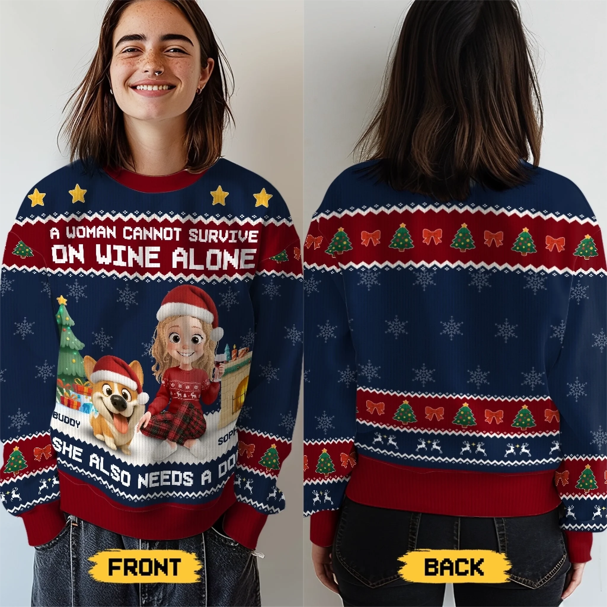 This lovely all-over-print sweatshirt is a perfect choice whether you are seeking for a special gift for your loved ones or just want to dress up your Holiday season with a trendy outfit.