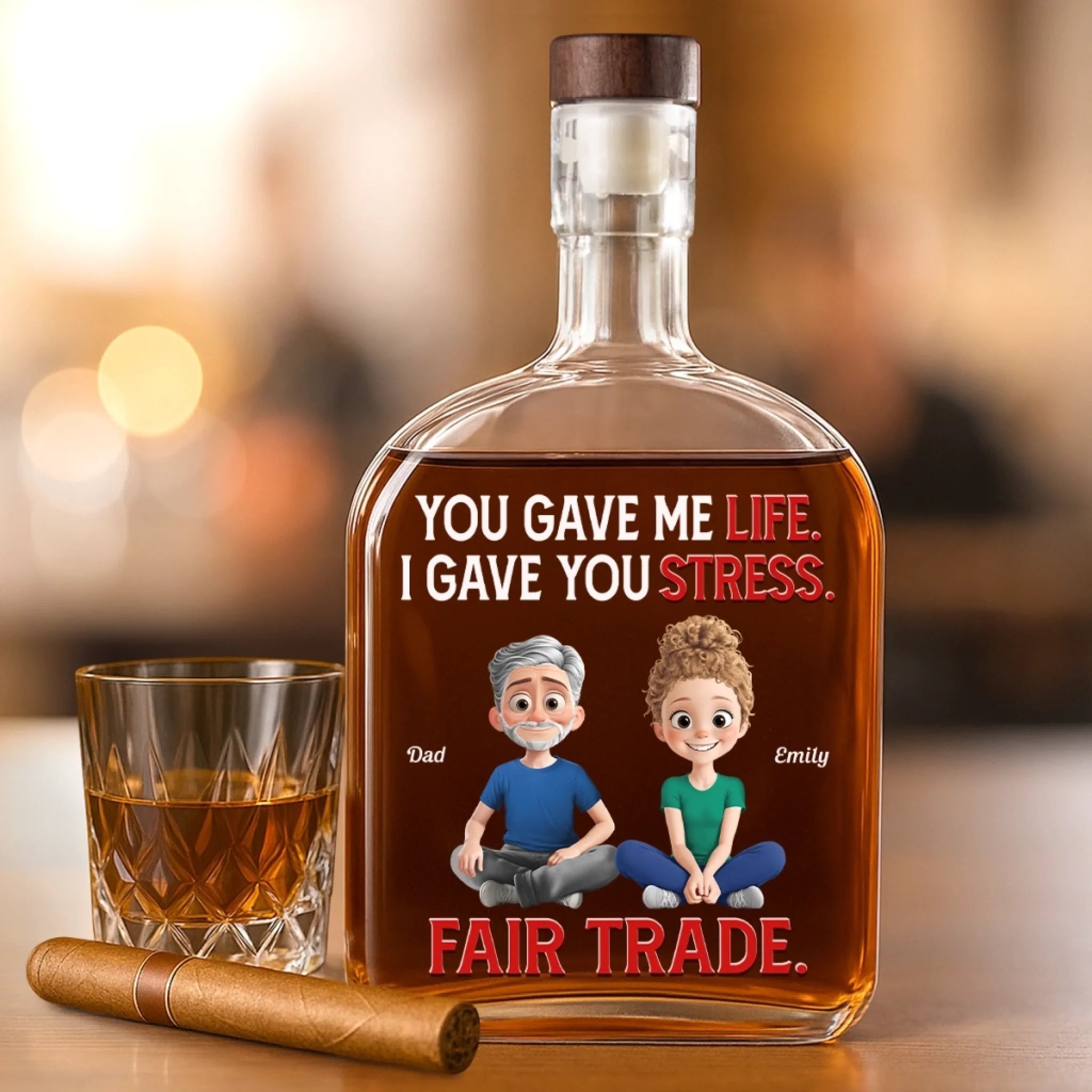 Custom Whiskey Bottle - Personalized Christmas Birthday Gifts For Dad, Daughter, Wine, Bourbon, Whiskey Lovers - I Gave Stress With Love