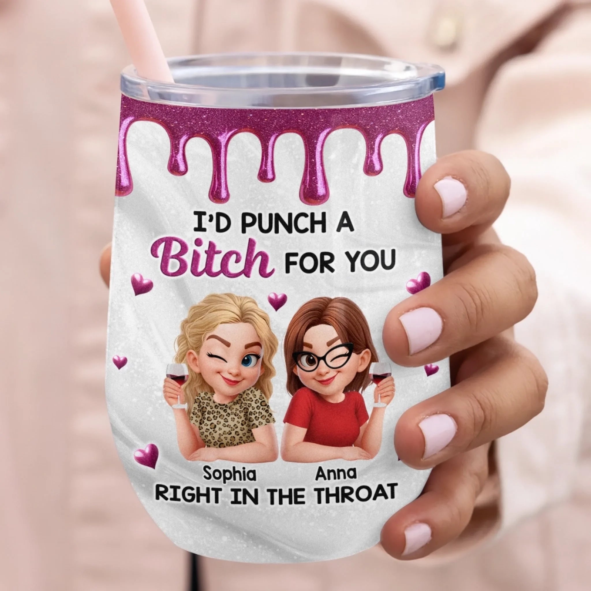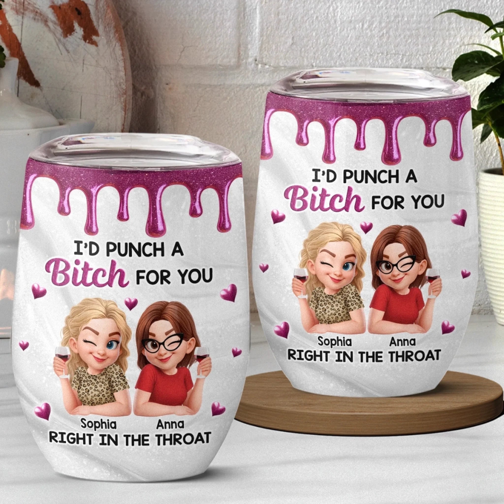 Custom Wine Tumbler - Personalized Best Friend Birthday Gifts For Women, Besties, Sisters, BFF - My Ride Or Die Since Day One