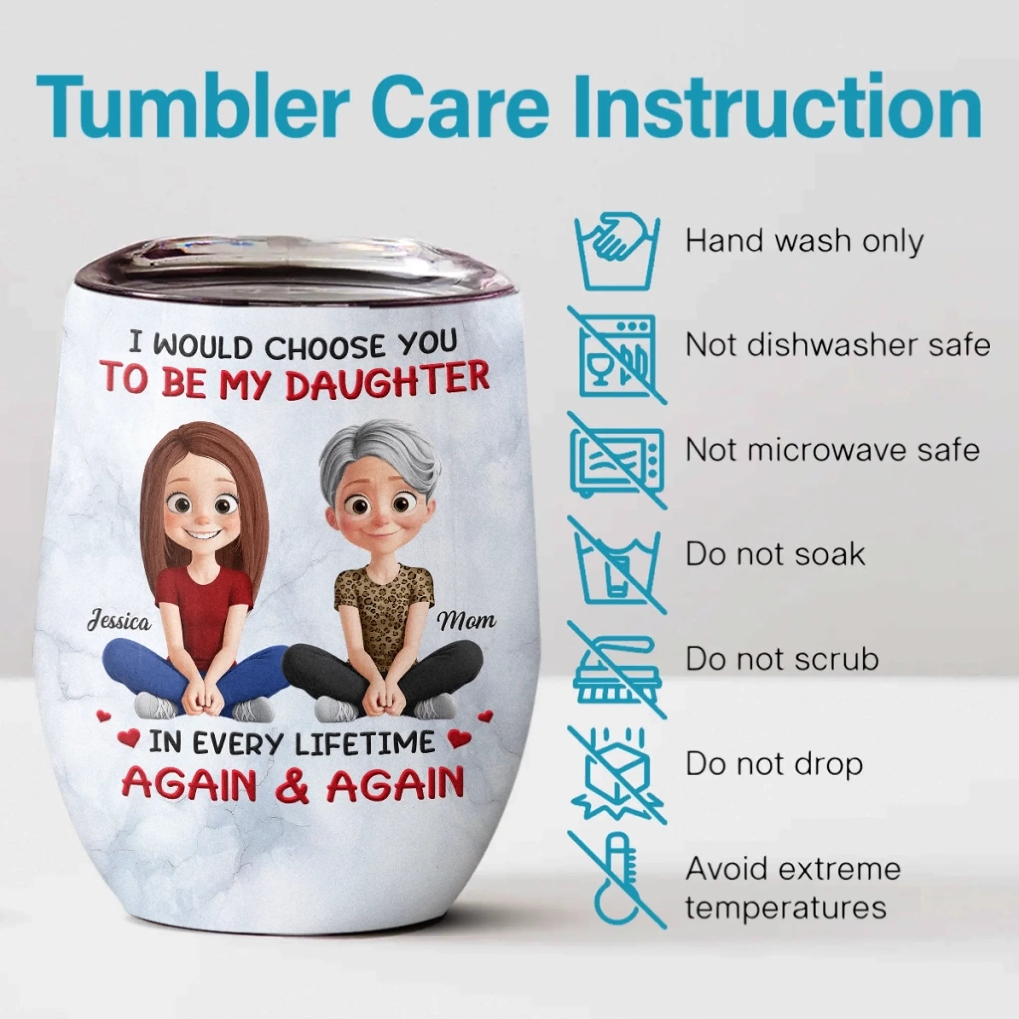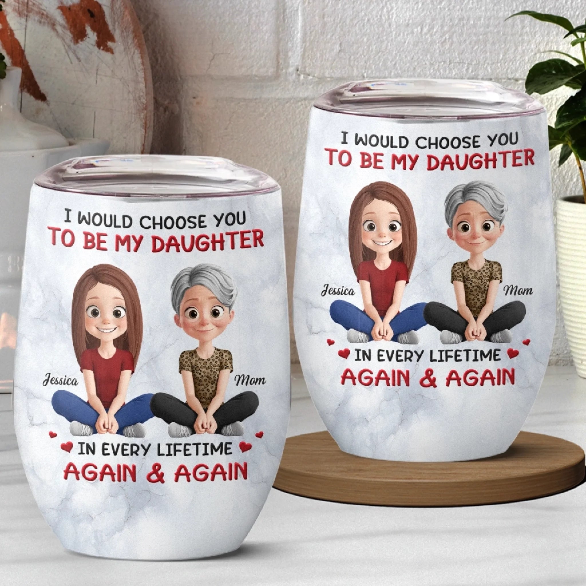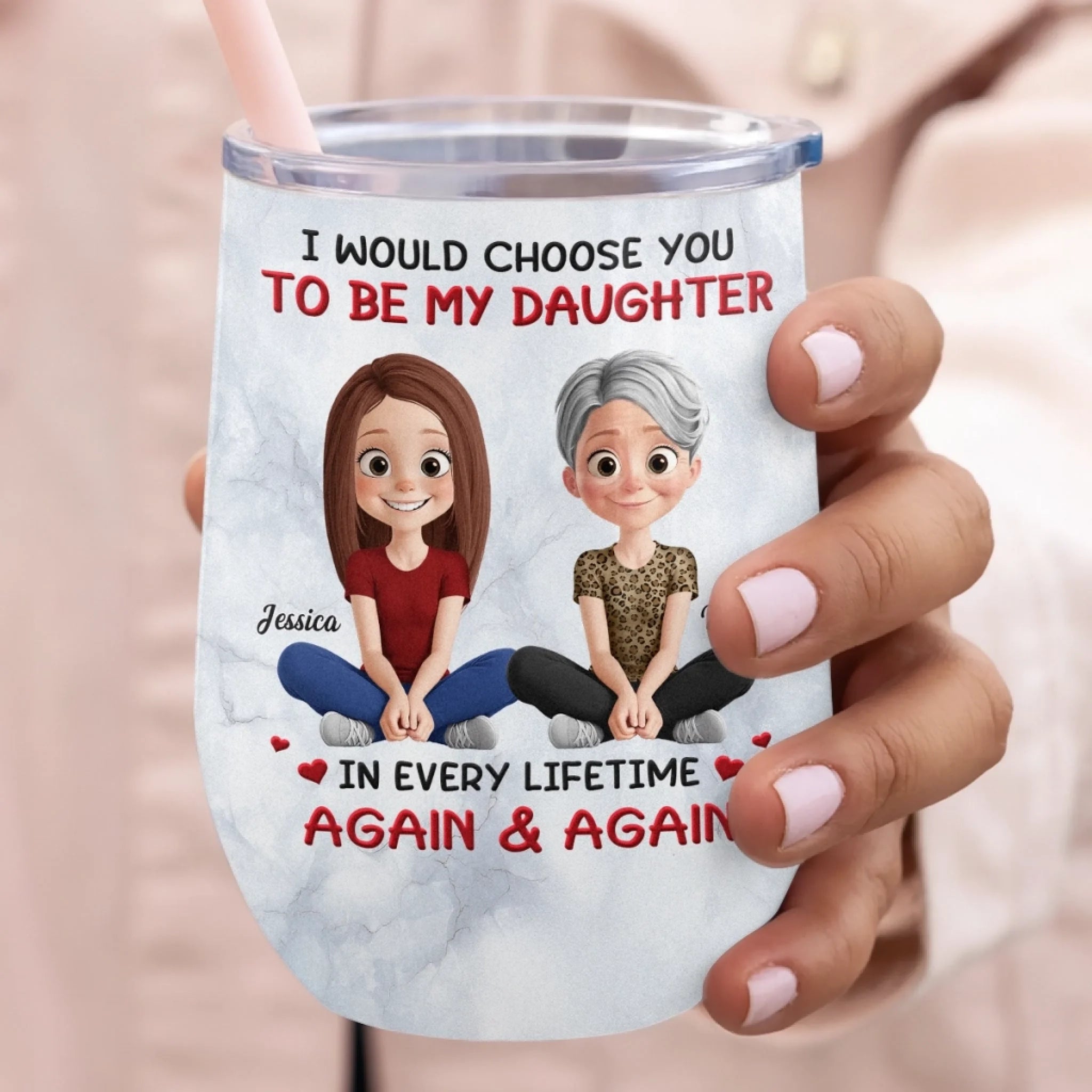Custom Wine Tumbler - Personalized Birthday Gifts For Mom, Daughter - Love Passed From Mom To Girl