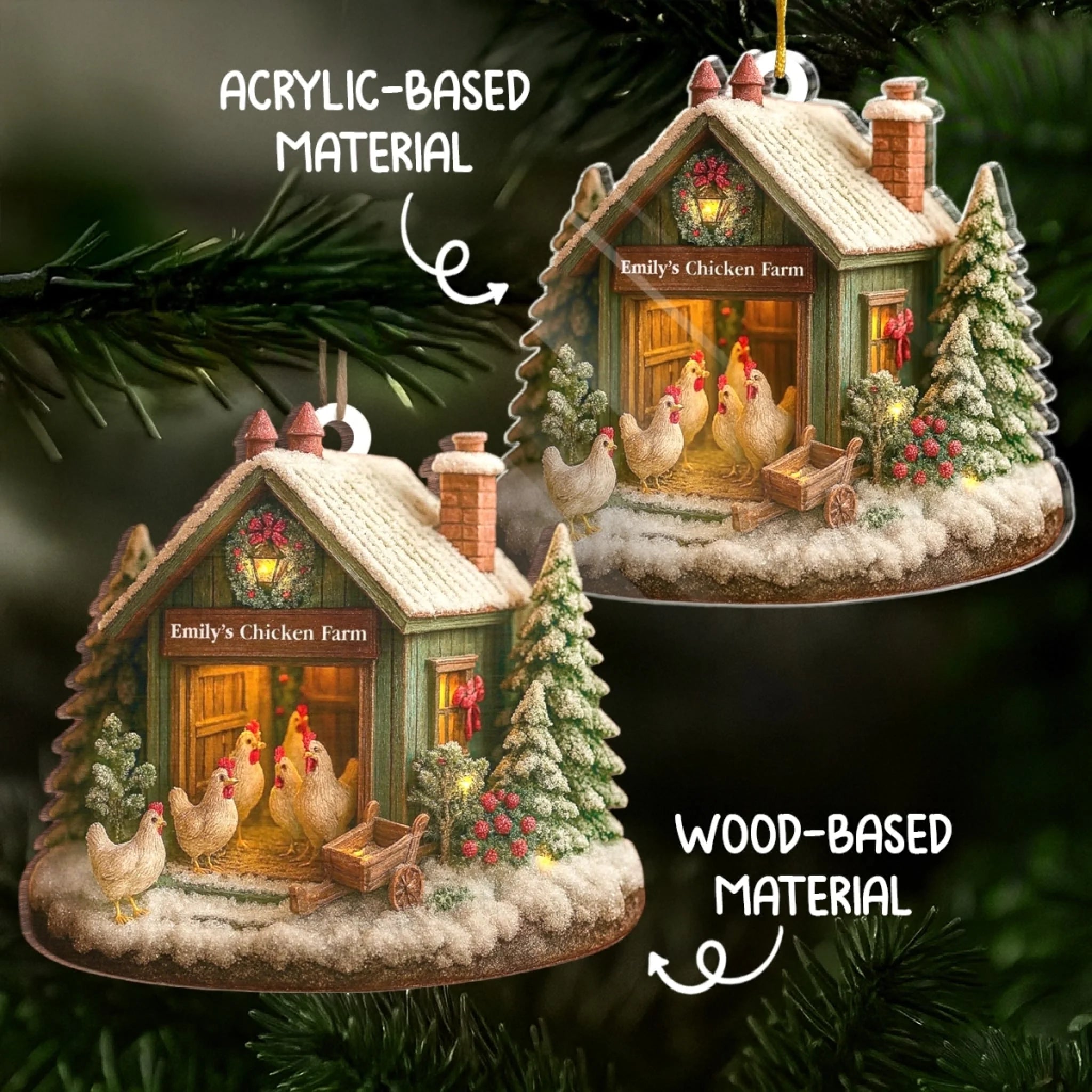 Custom Wood Ornament - Personalized Christmas Birthday Gifts For Women, Men - Chicken Love, Farm Life, Christmas Joy
